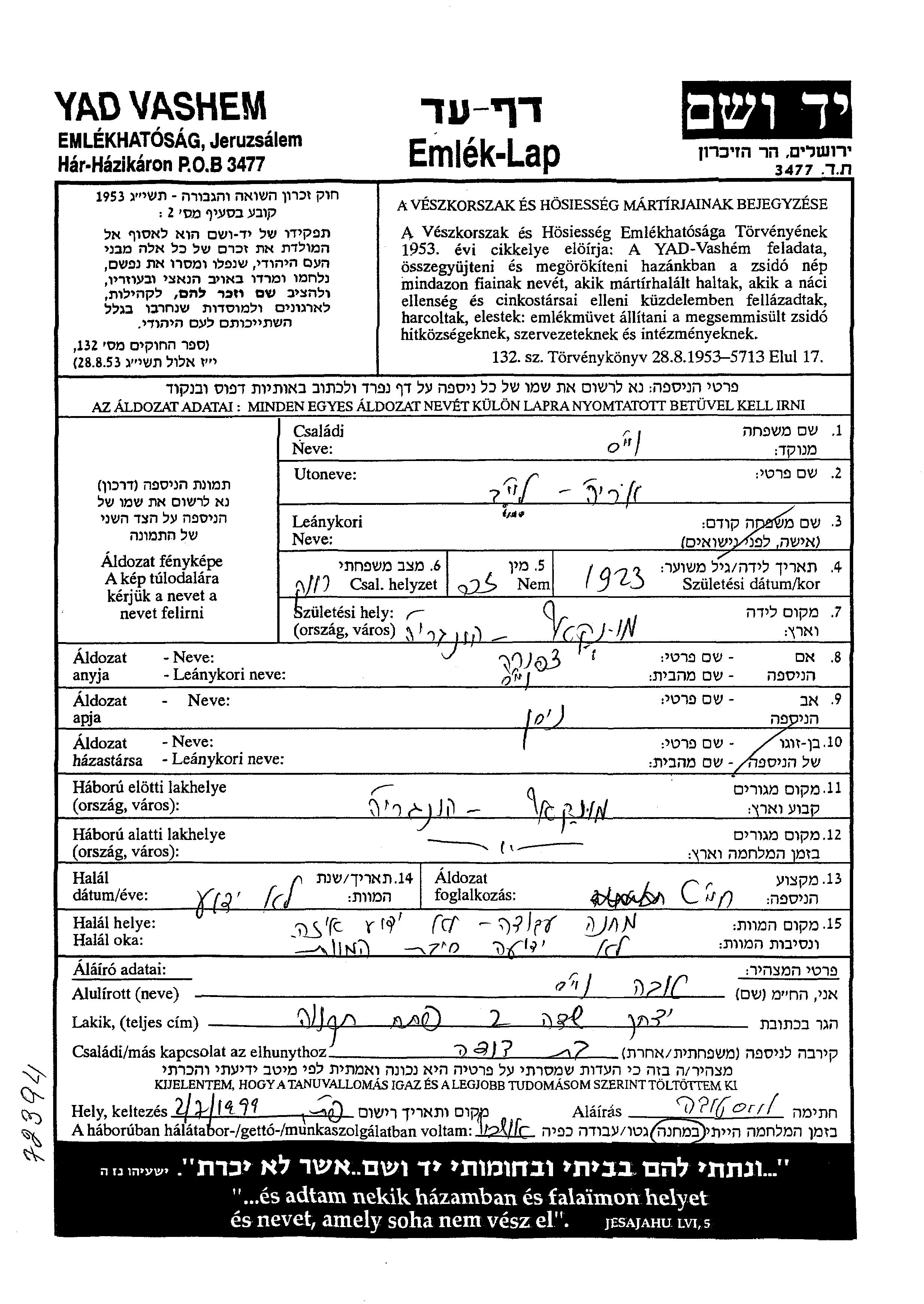 יד ושם - המפעל להנצחת השמות בדפי עד