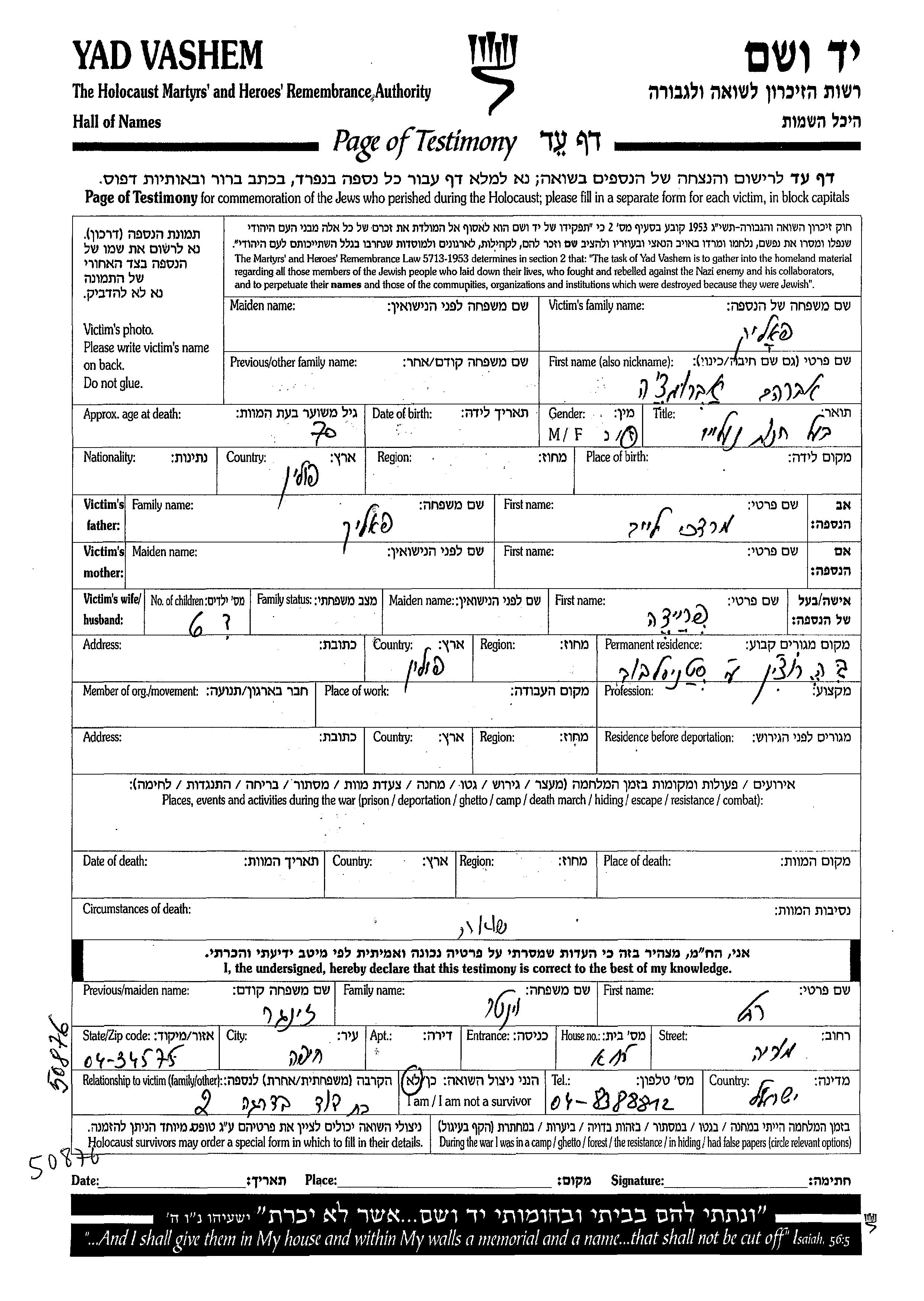 יד ושם - המפעל להנצחת השמות בדפי עד