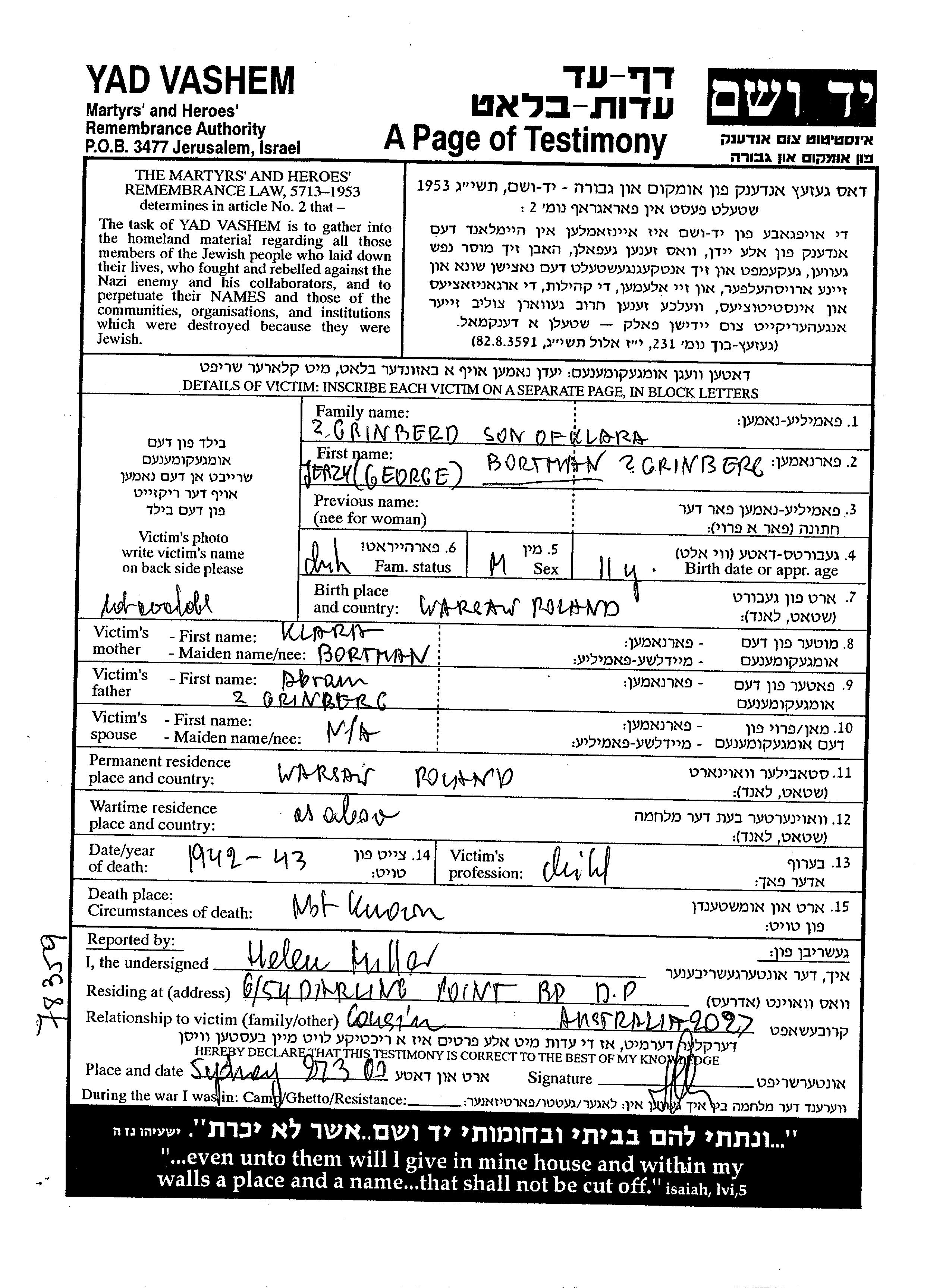 גרינברג Jerzy George Varsha, פולין דף-עד