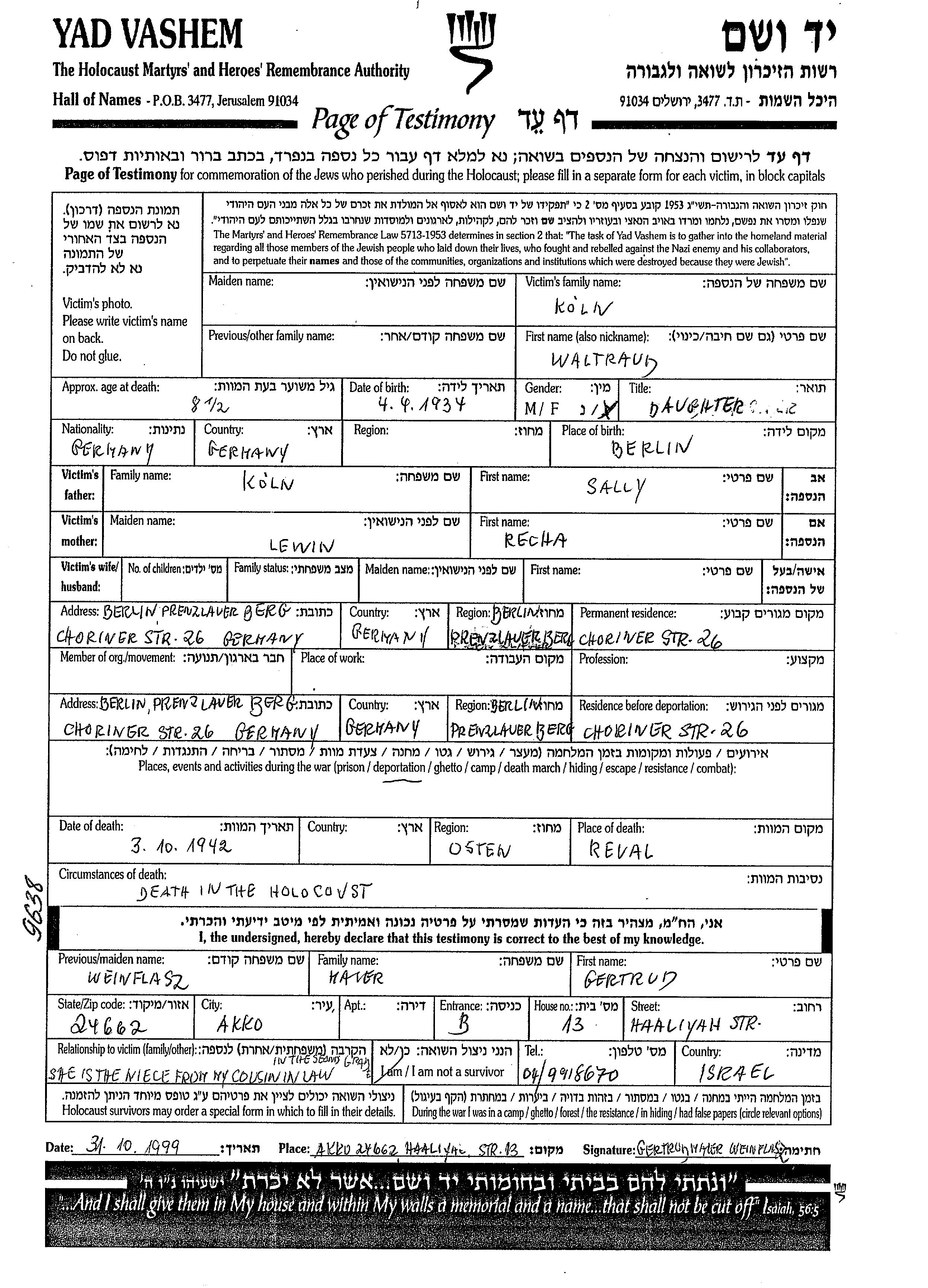 מקום בזמן המלחמה/בשואה: