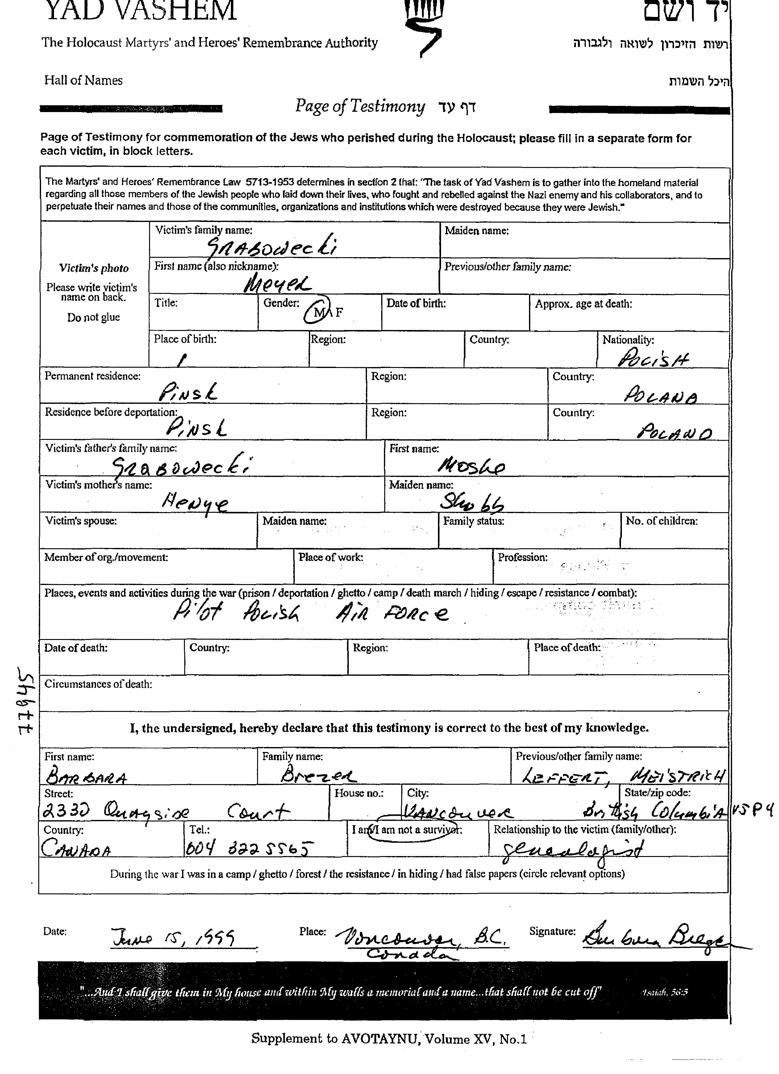 חיפוש שם מוסר דף העד. חיפוש לפי כל שם פרטי, כולל כינוי או שם חיבה