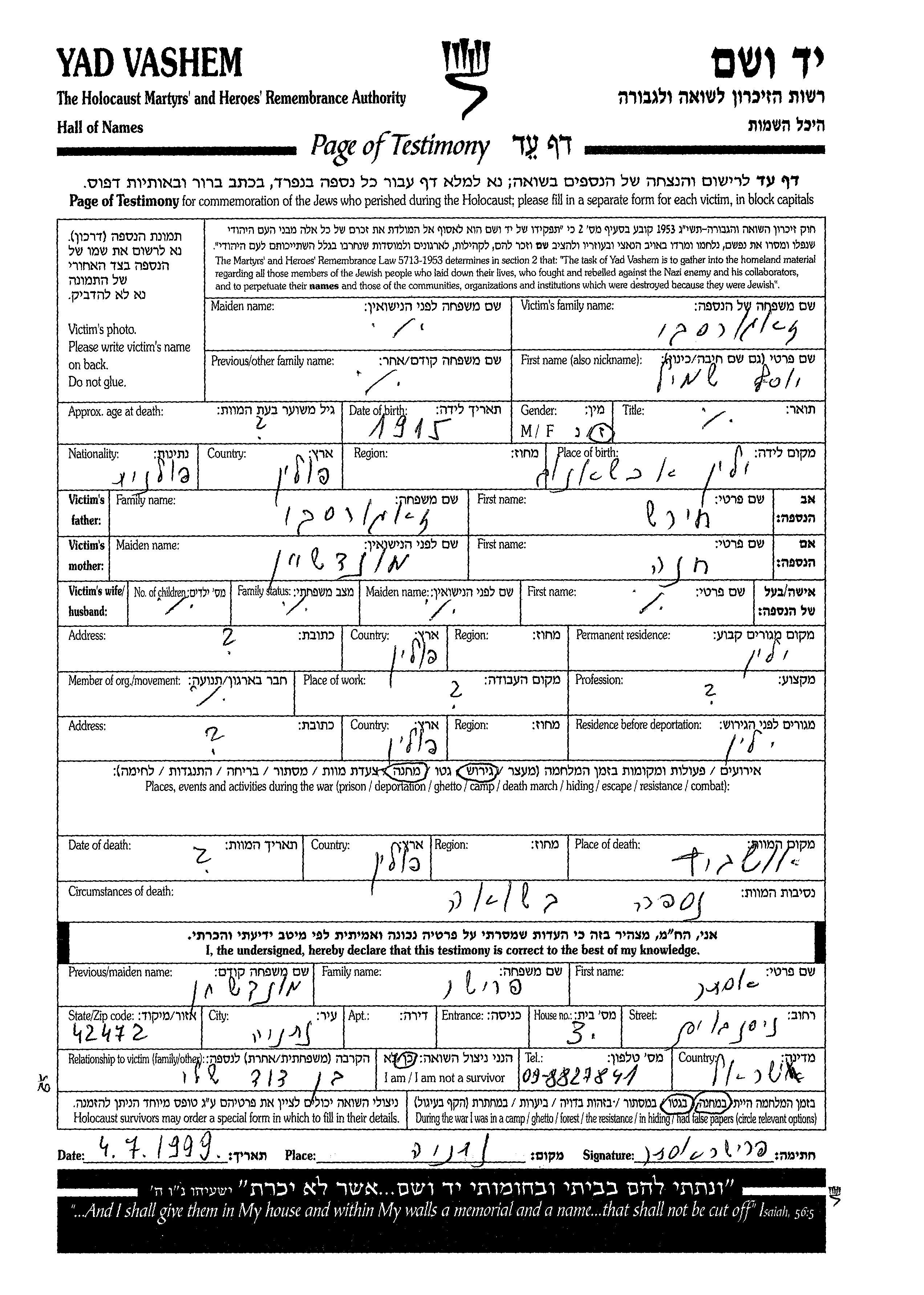 יד ושם - המפעל להנצחת השמות בדפי עד