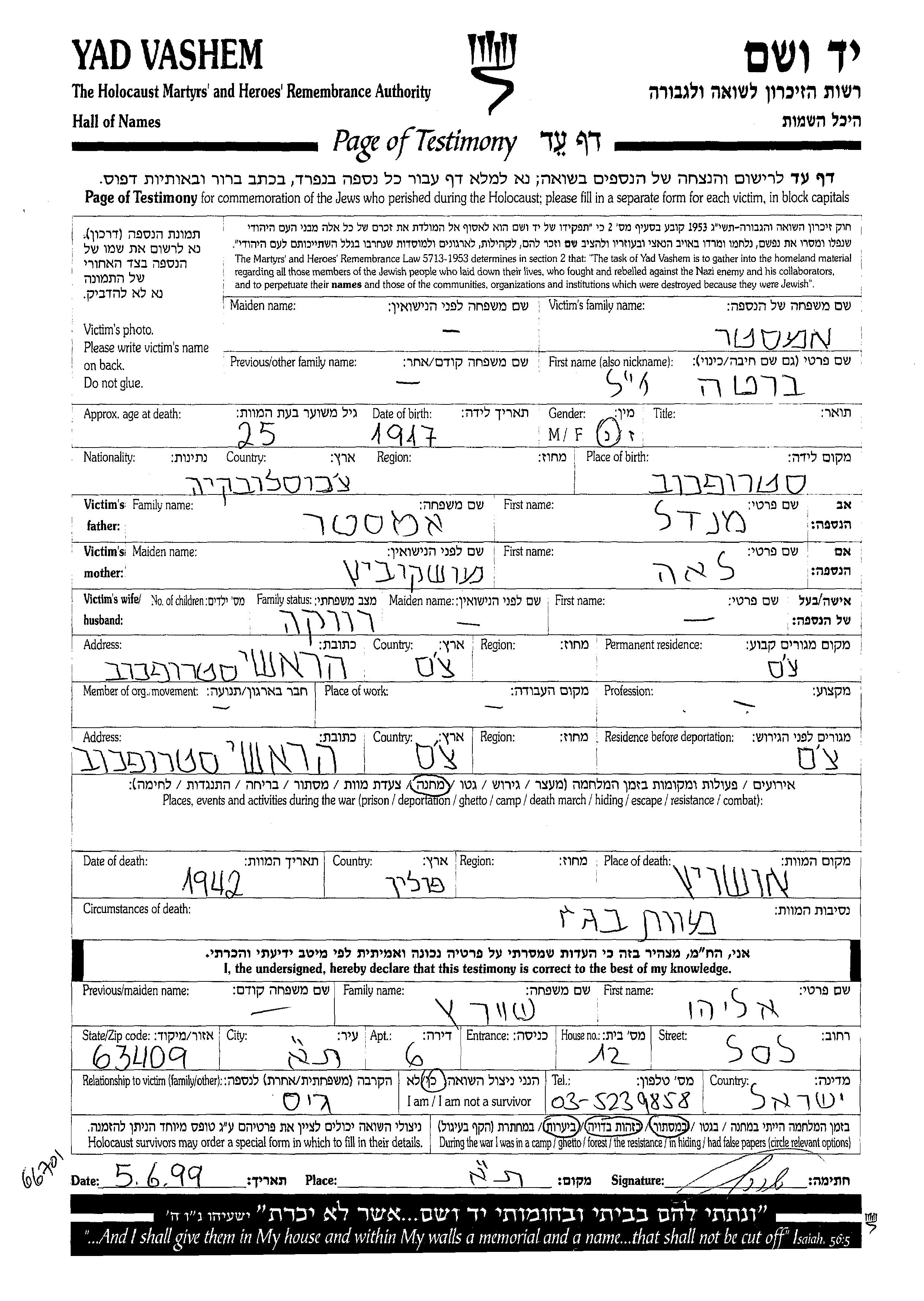 יד ושם - המפעל להנצחת השמות בדפי עד