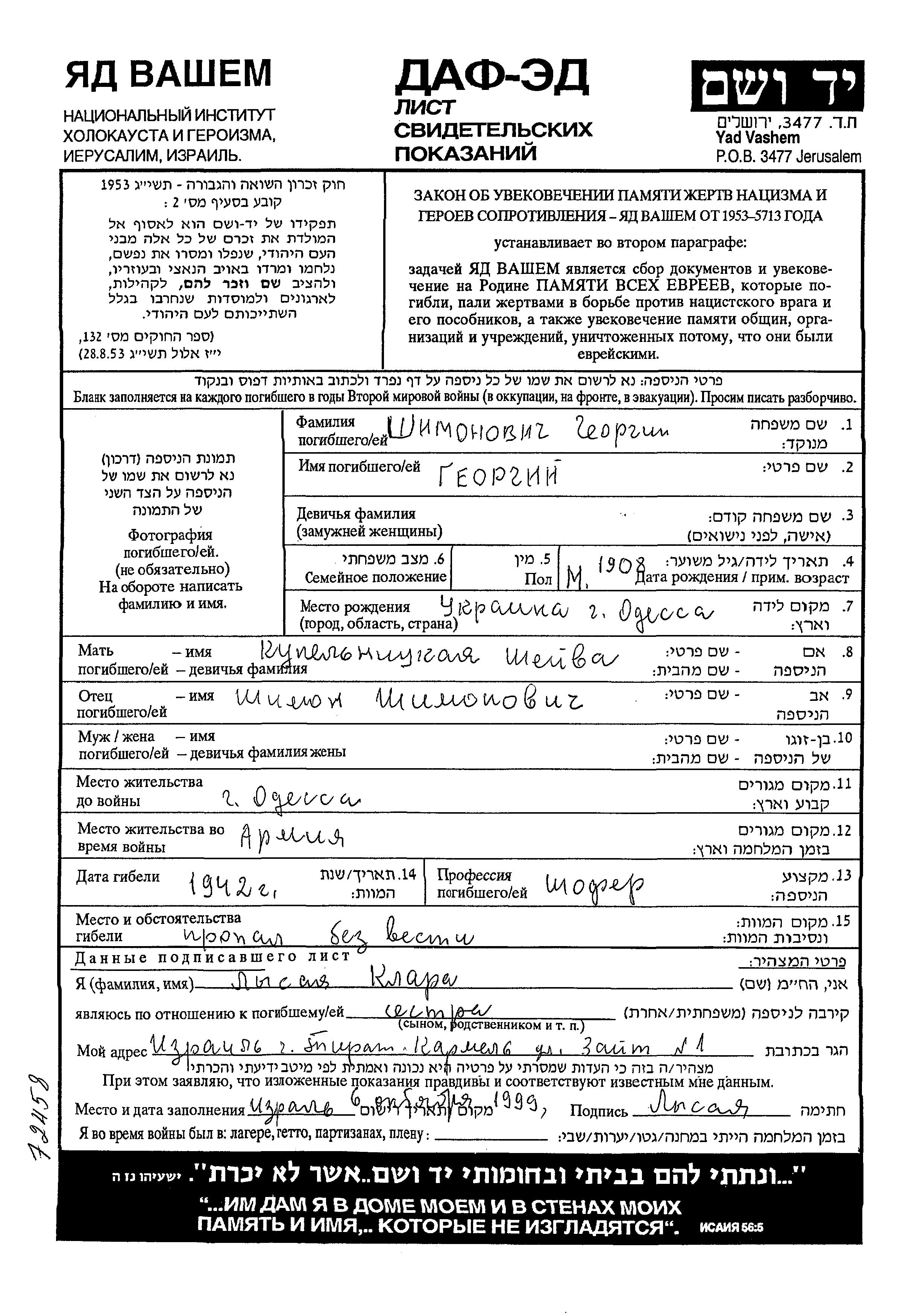 Shimonovich קופלניצקי Georgi 1908 Odessa, אוקראינה (ברה"מ) דף-עד
