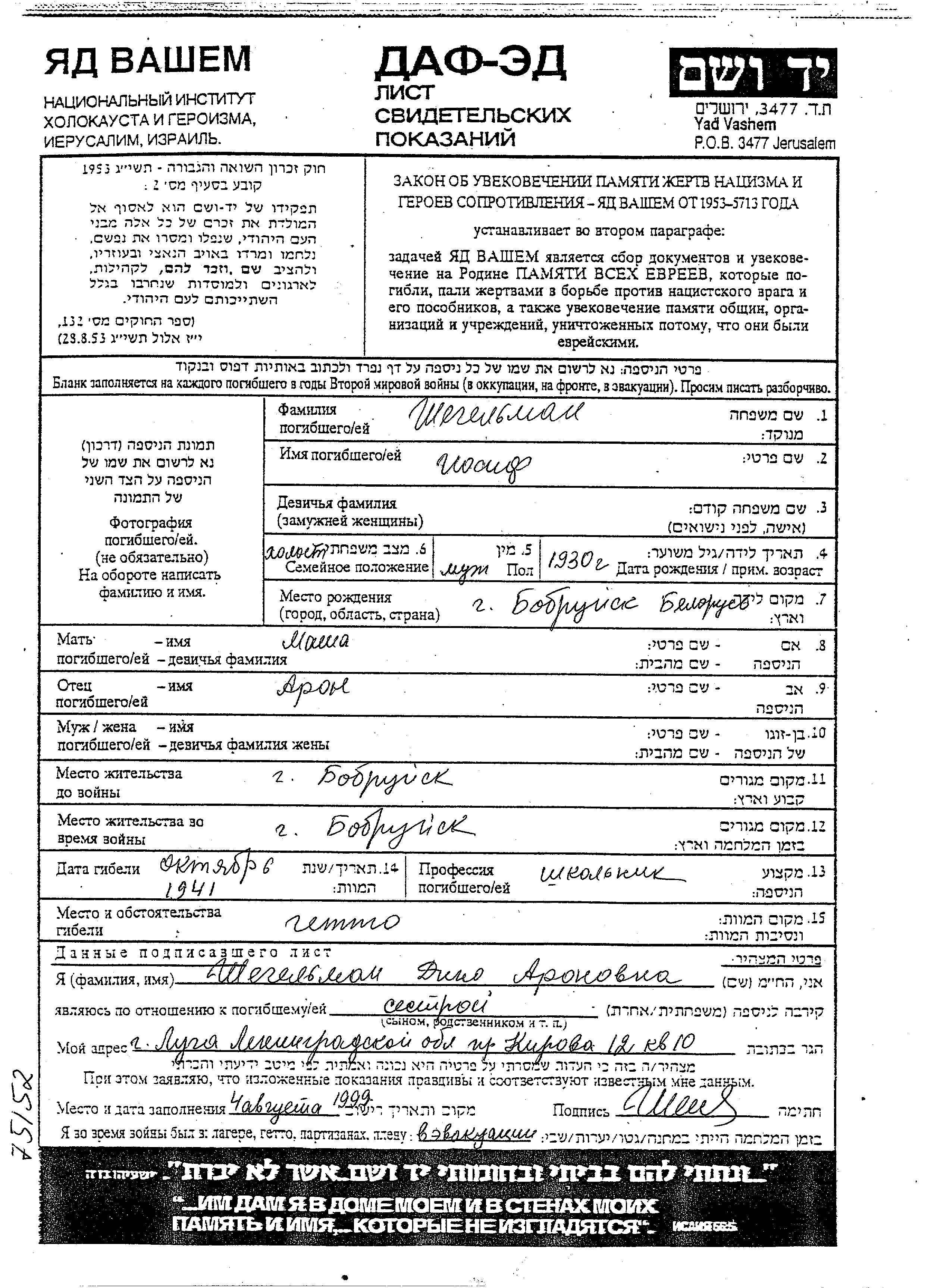 שגלמן Iosif 1930 Bobruysk, ביאלורוסיה (ברה"מ) דף-עד