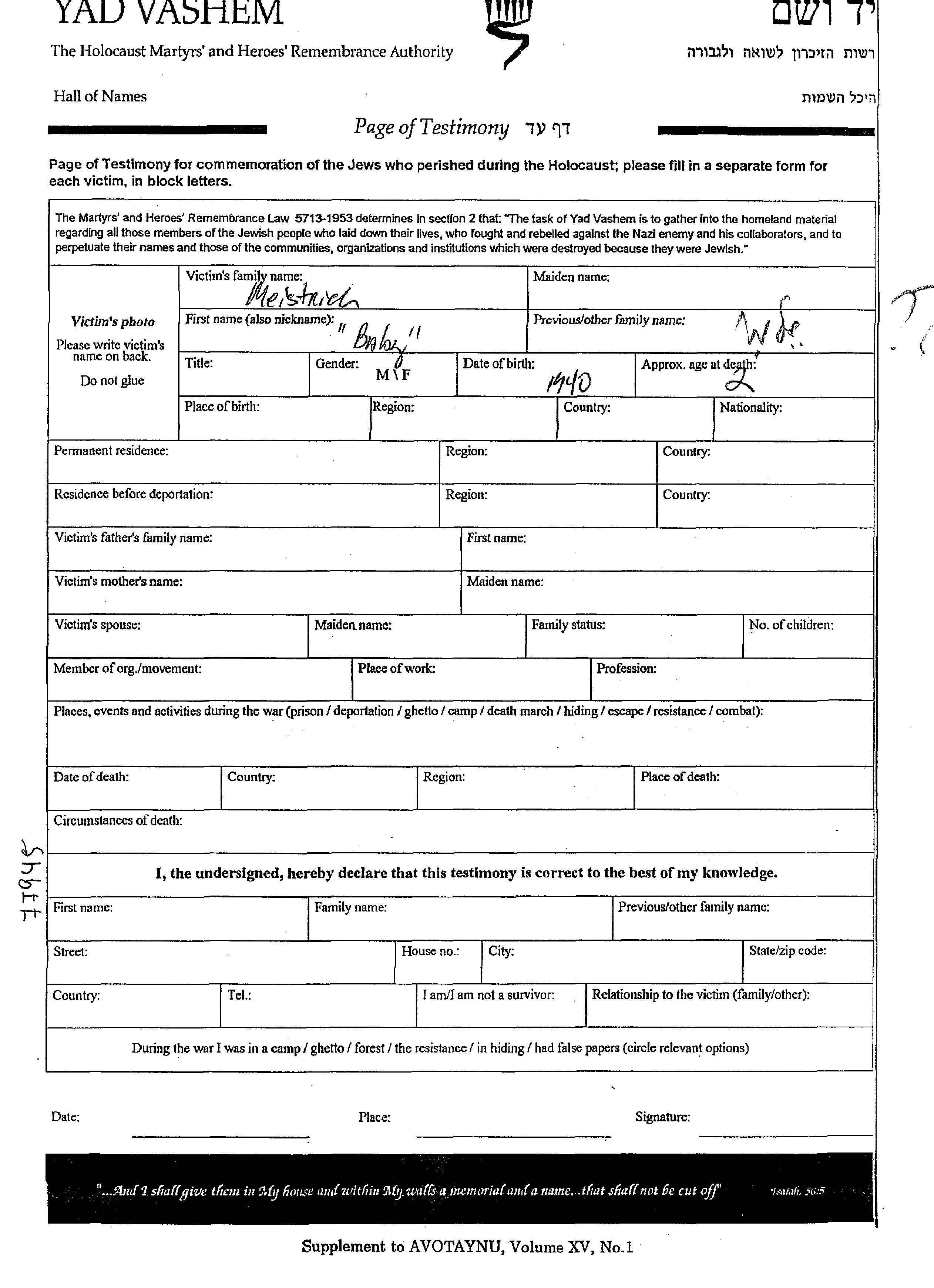 חיפוש שם מוסר דף העד. חיפוש לפי כל שם פרטי, כולל כינוי או שם חיבה