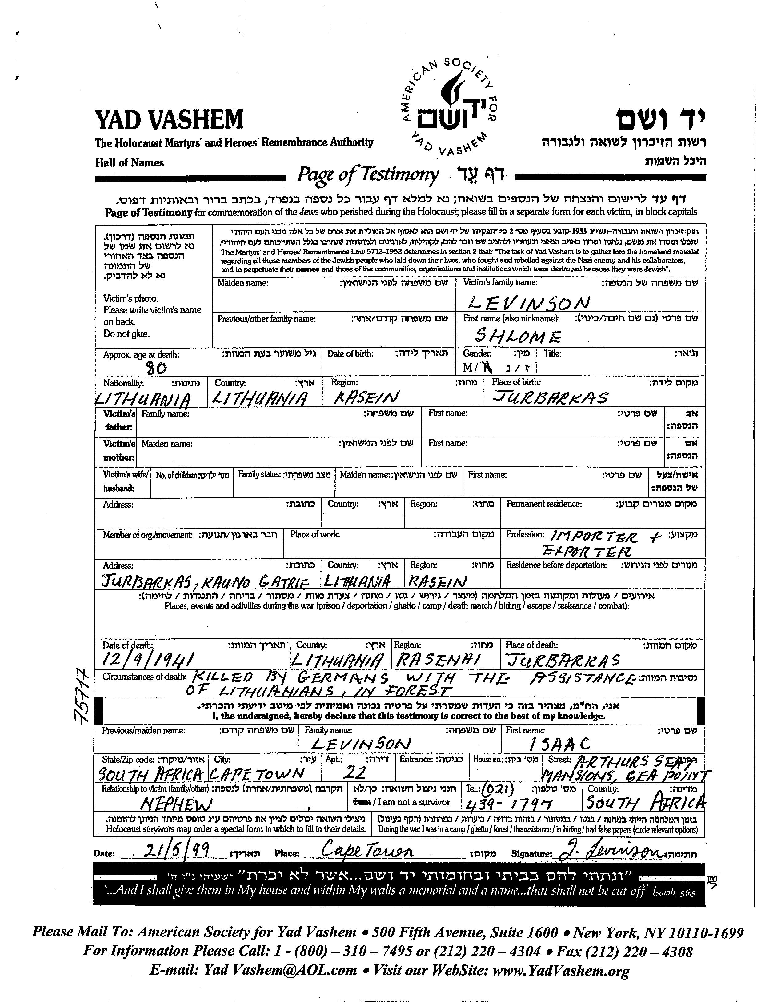 לווינסון Shlome Jurbarkas, ליטא דף-עד