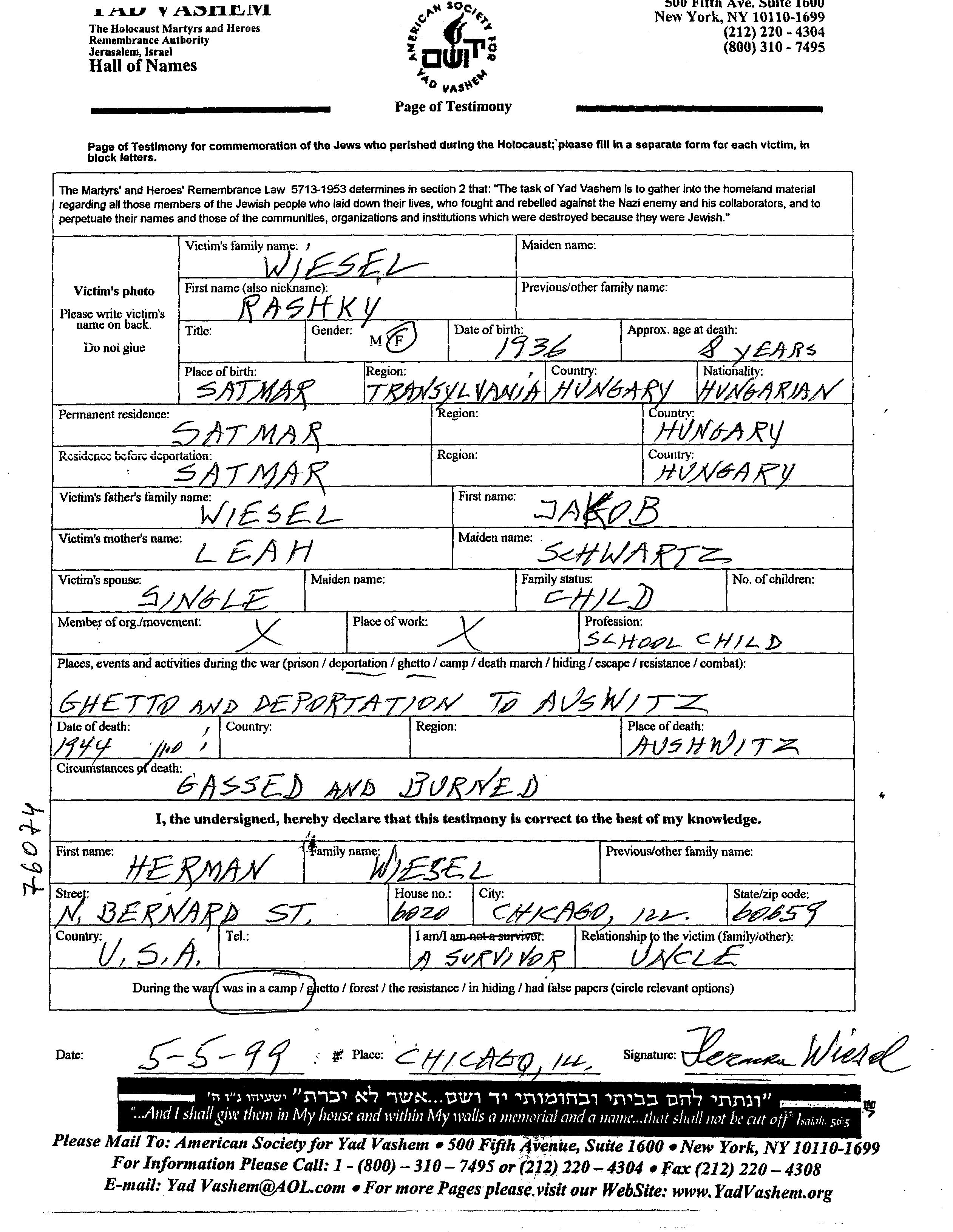 Wiesel Rashky 1936 Satmar, רומניה דף-עד