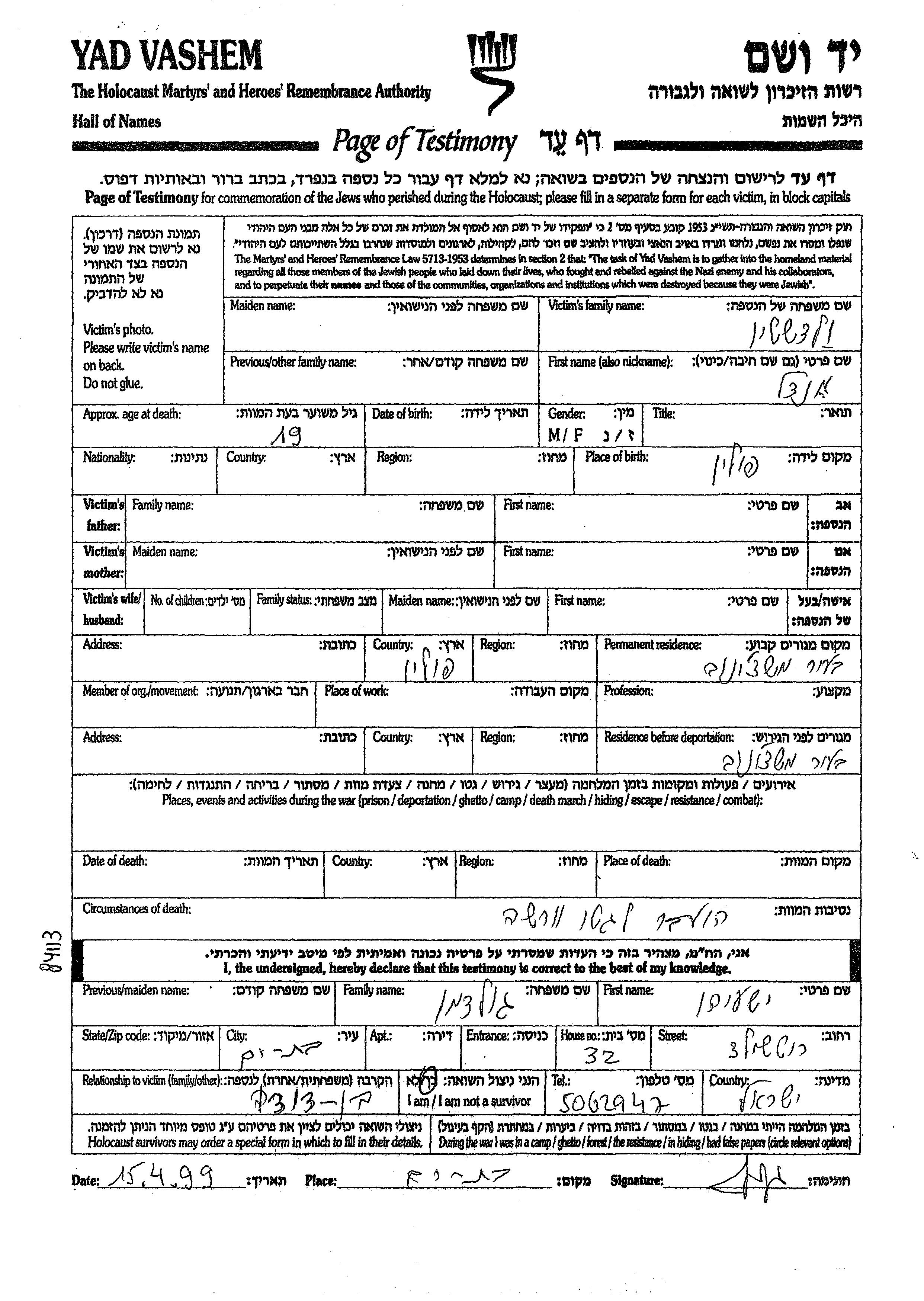 יד ושם - המפעל להנצחת השמות בדפי עד