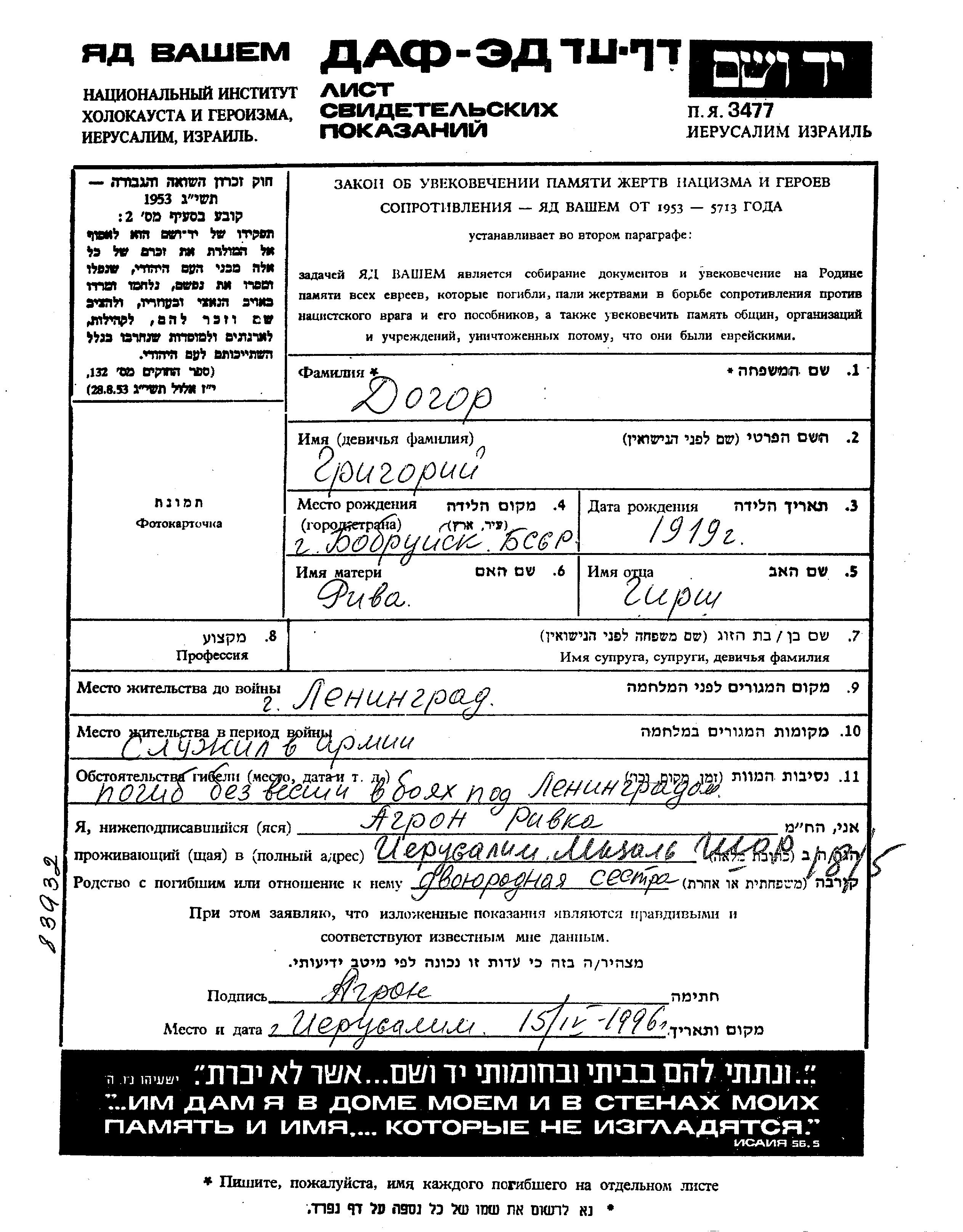 חיפוש שם מוסר דף העד. חיפוש לפי כל שם פרטי, כולל כינוי או שם חיבה