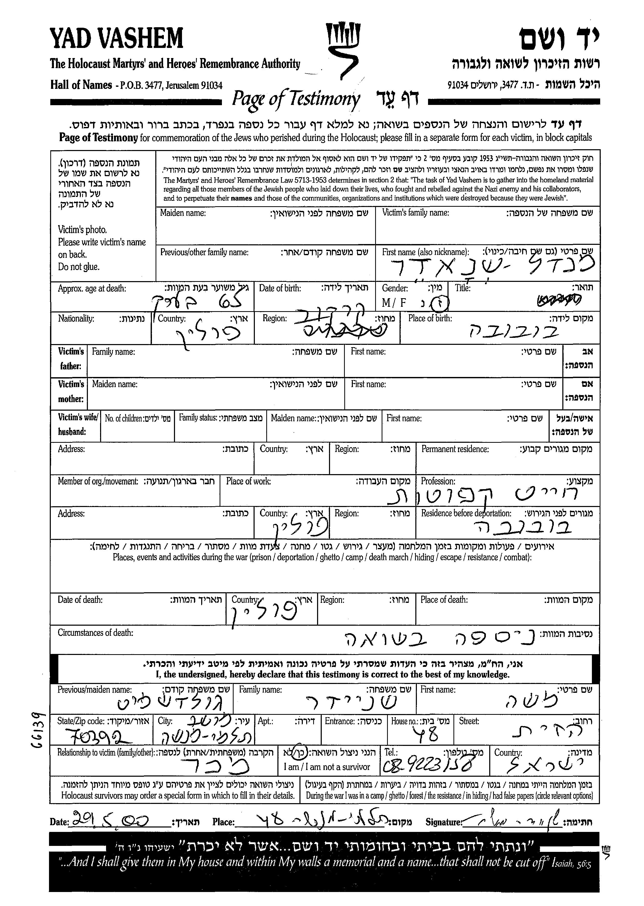 יד ושם - המפעל להנצחת השמות בדפי עד