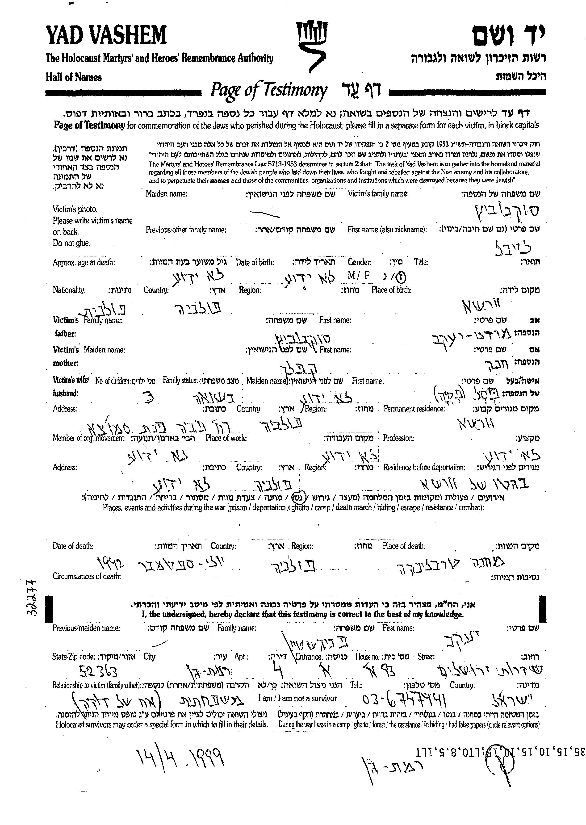 לייבל סוקנוביץ נולד בWarszawa שבפולין למרדכי יעקב וחנה. הוא היה נשוי לפסל. לפני מלחמת העולם השניה התגורר בWarszawa שבפולין. בזמן המלחמה הוא היה בWarszawa שבפולין. לייבל נרצח בשואה. מקום המוות: Treblinka שבפולין בשנת 1942.