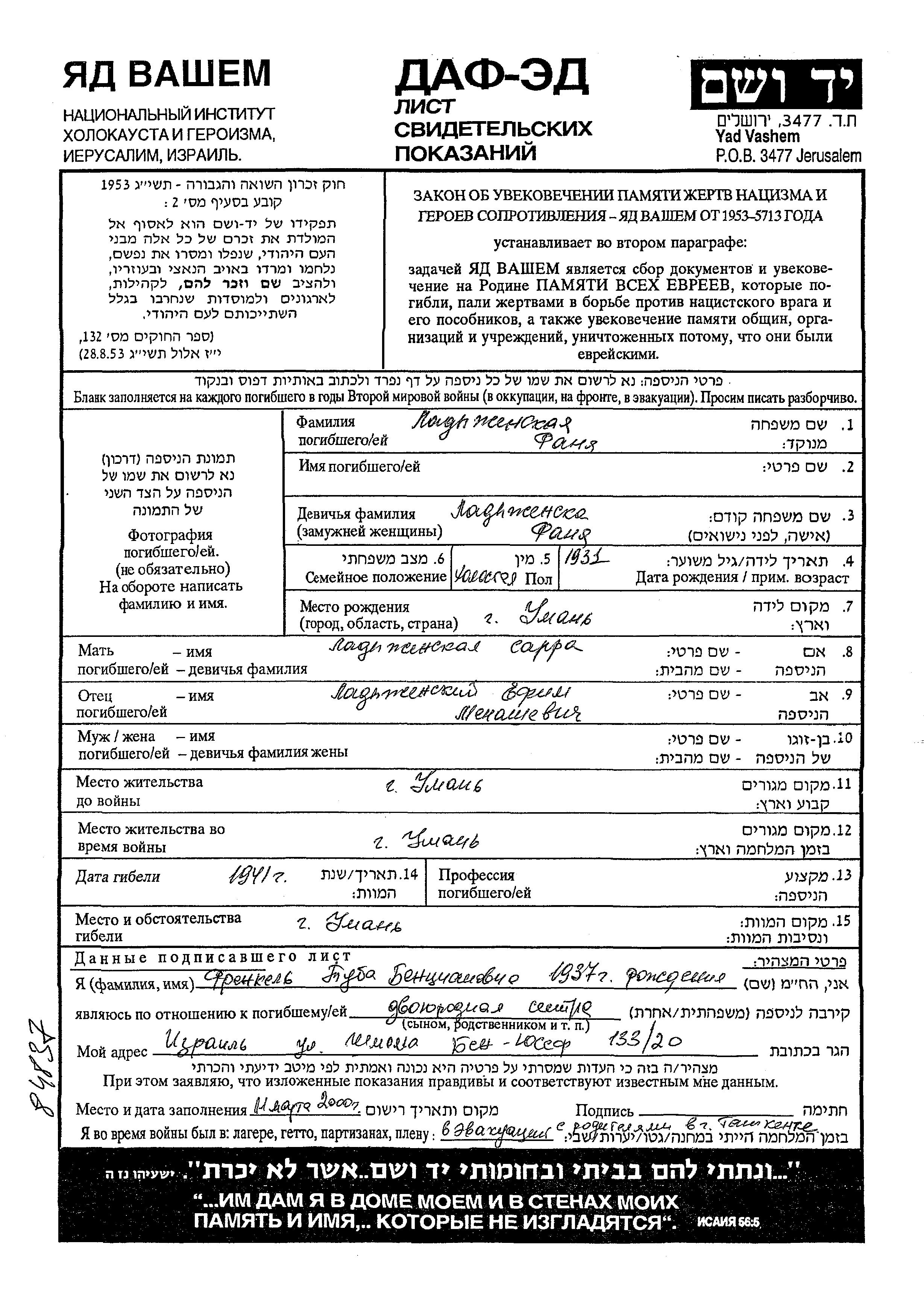 יד ושם - המפעל להנצחת השמות בדפי עד