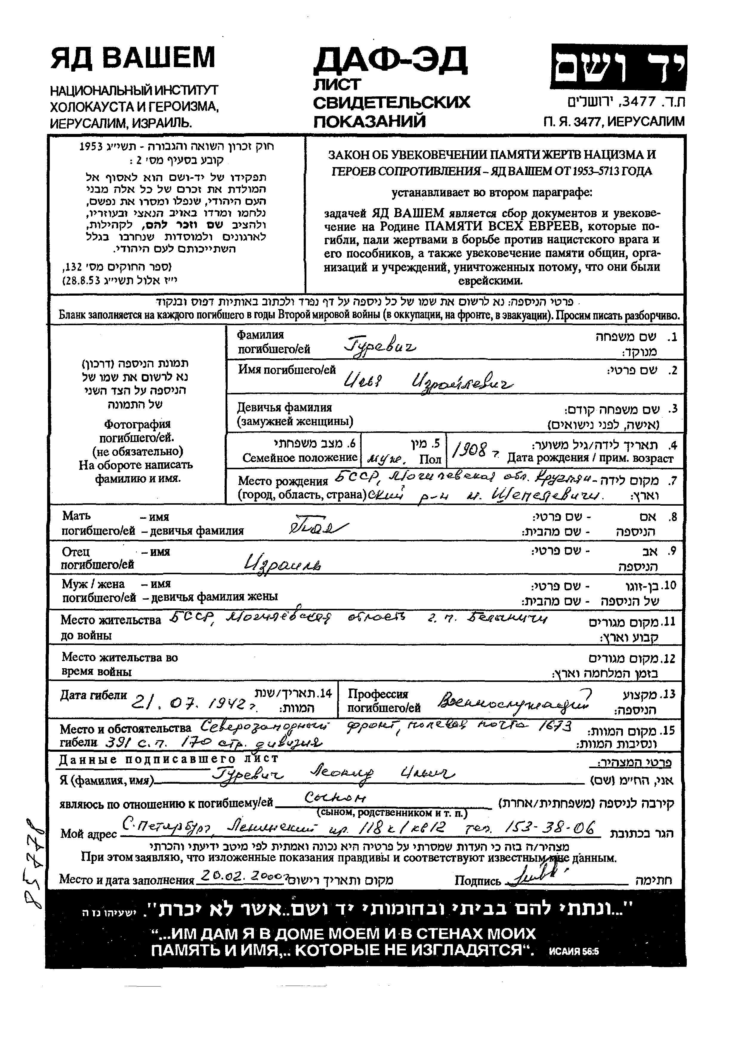 חיפוש שם מוסר דף העד. חיפוש לפי כל שם פרטי, כולל כינוי או שם חיבה