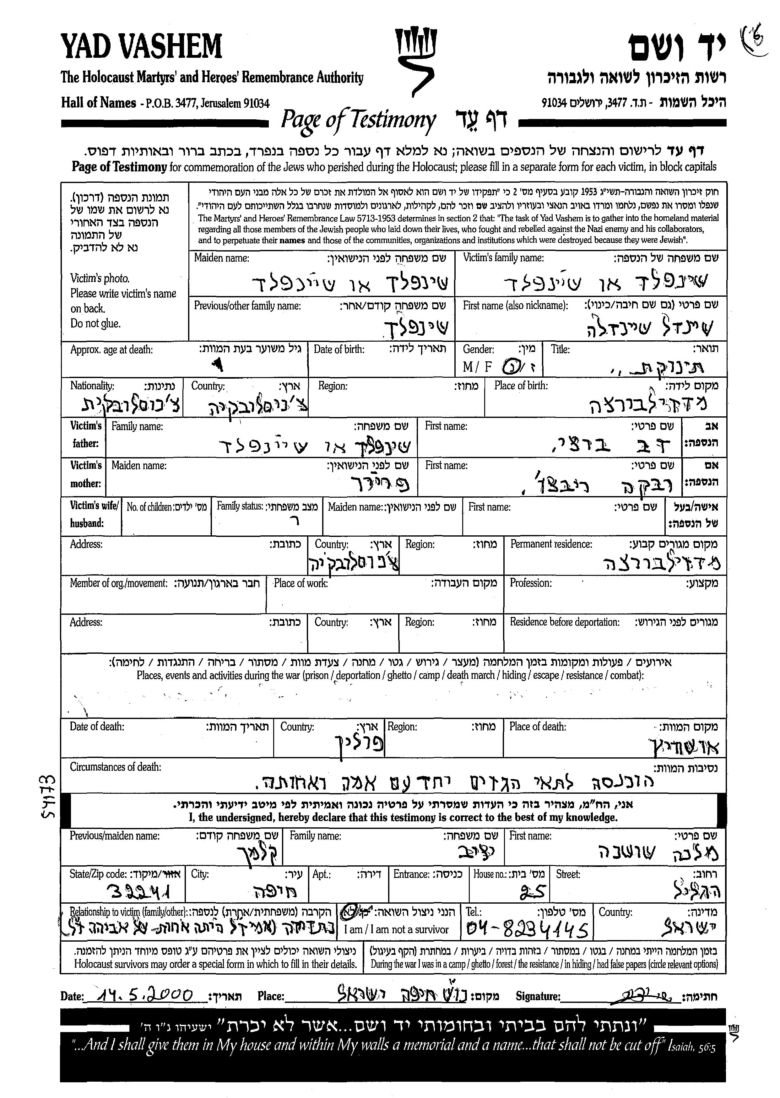 חיפוש שם מוסר דף העד. חיפוש לפי כל שם פרטי, כולל כינוי או שם חיבה