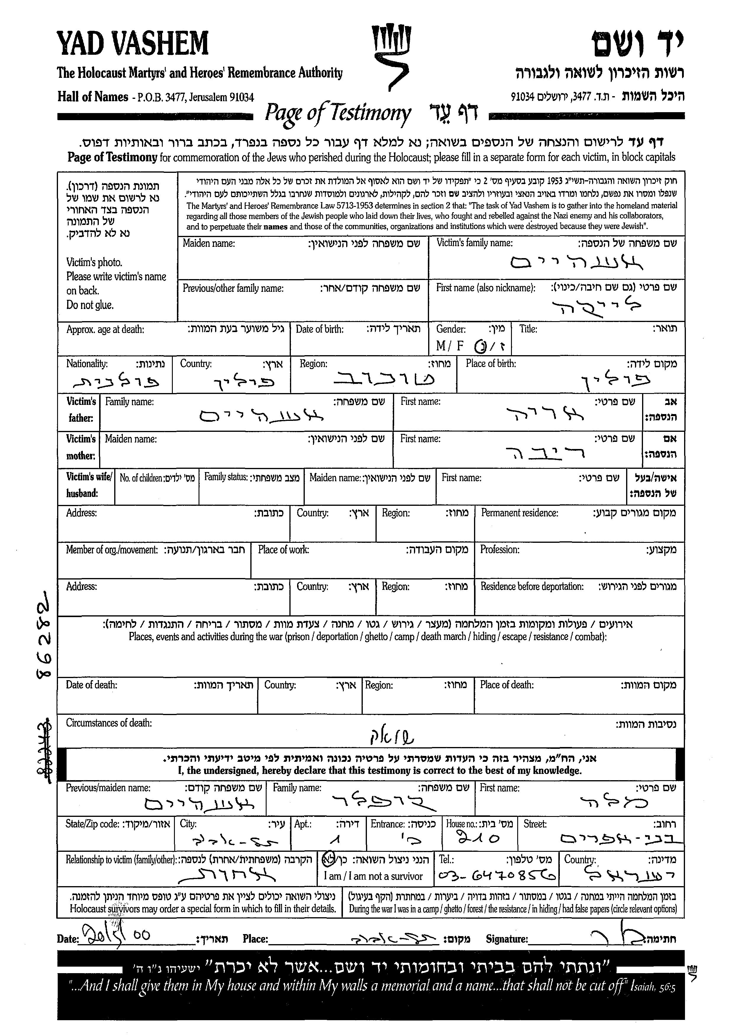 יד ושם - המפעל להנצחת השמות בדפי עד