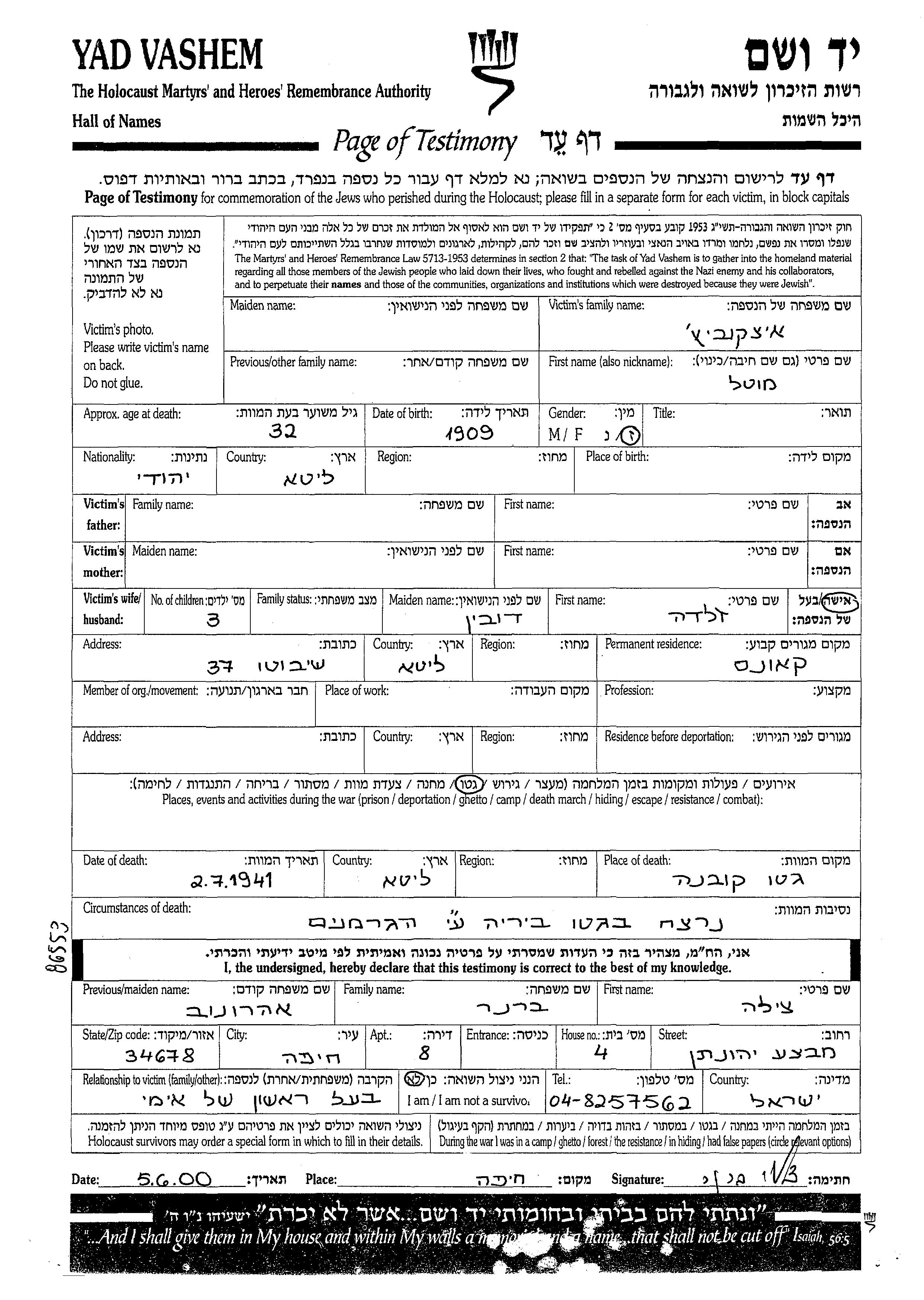 יד ושם - המפעל להנצחת השמות בדפי עד