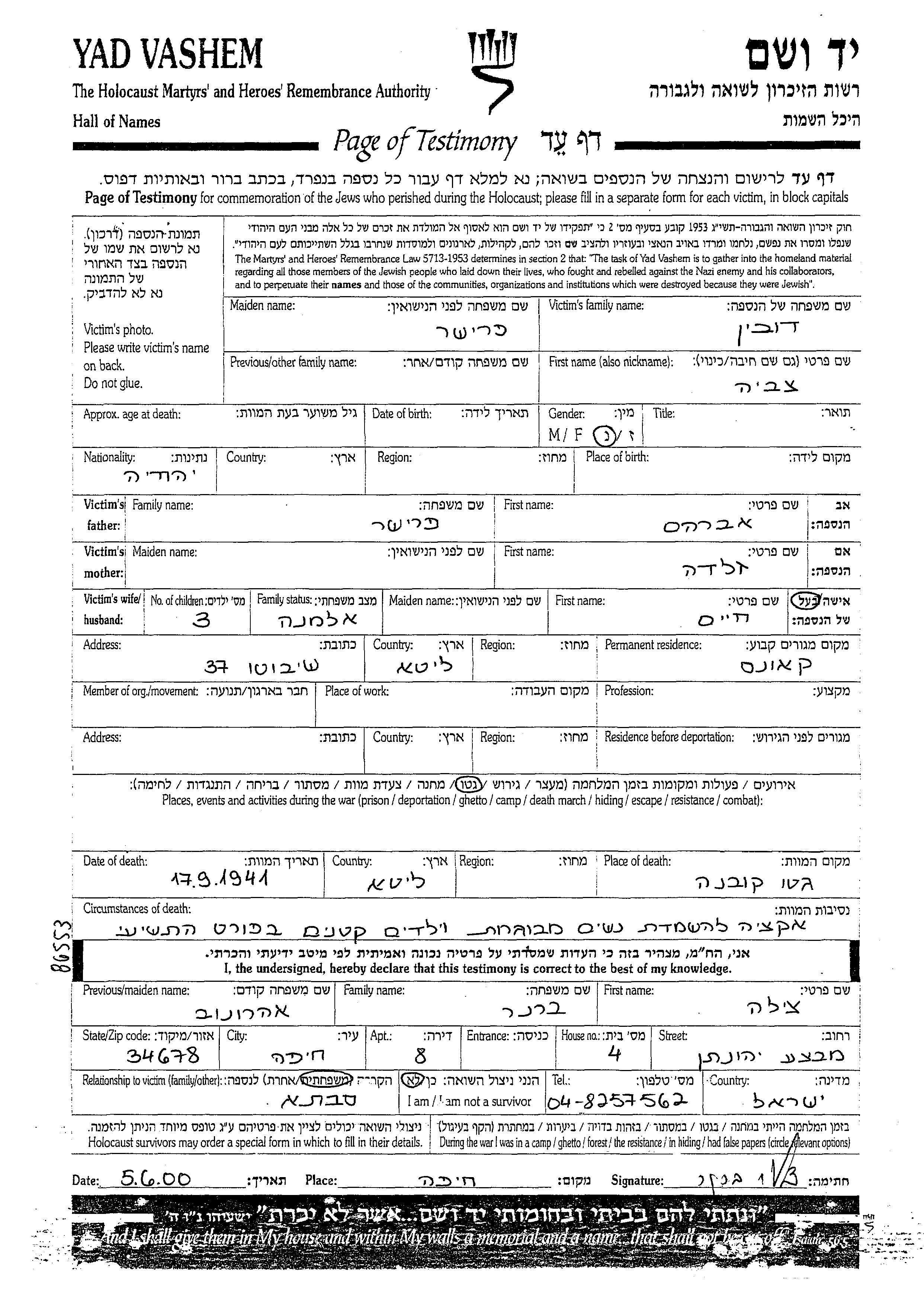 עיר/כפר, גטו/מחנה או אתר רצח או מחוז/אזור או מדינה. שם מקום ניתן לחפש רק בא-ב לטיני.