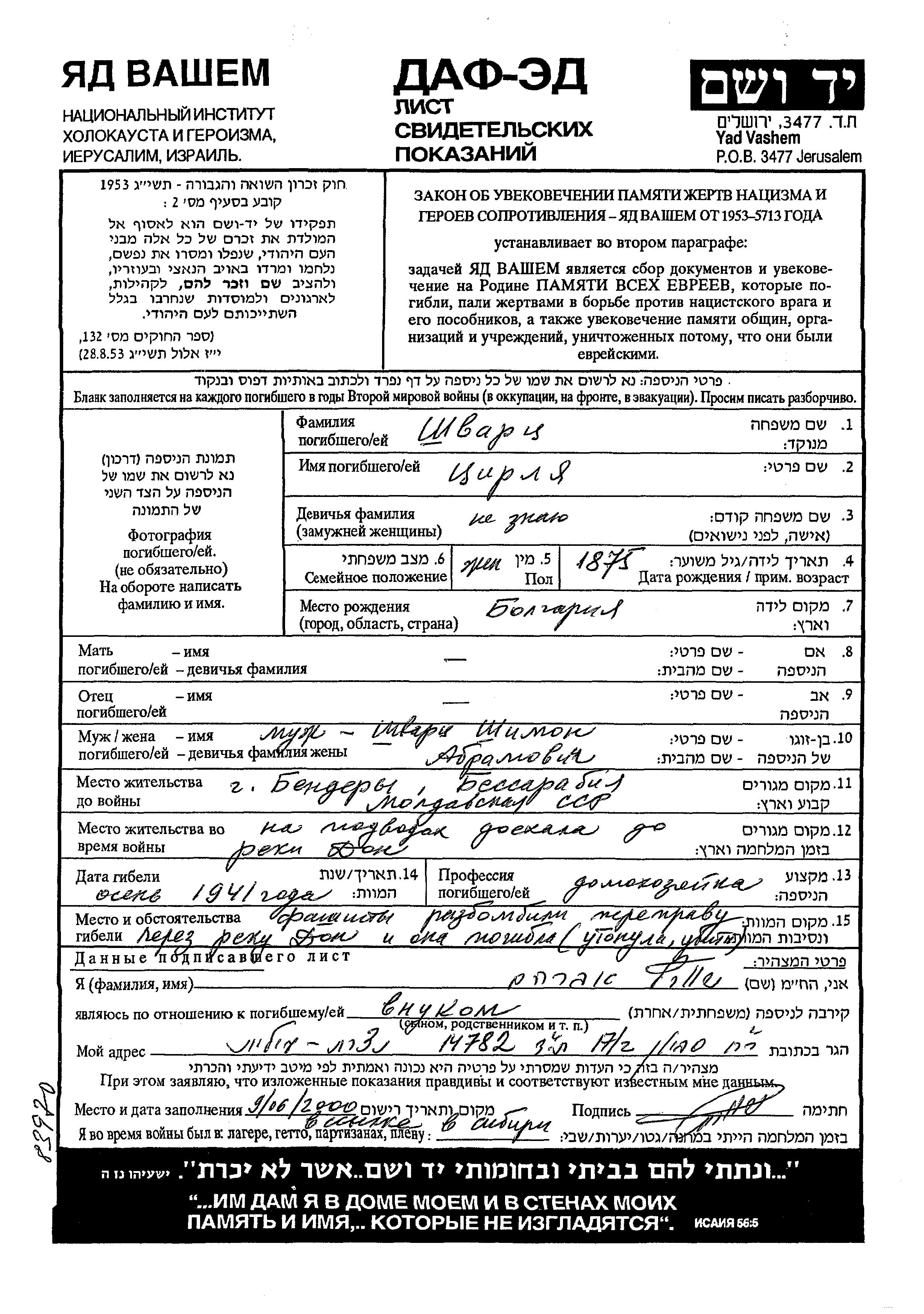 חיפוש שם מוסר דף העד. חיפוש לפי כל שם פרטי, כולל כינוי או שם חיבה