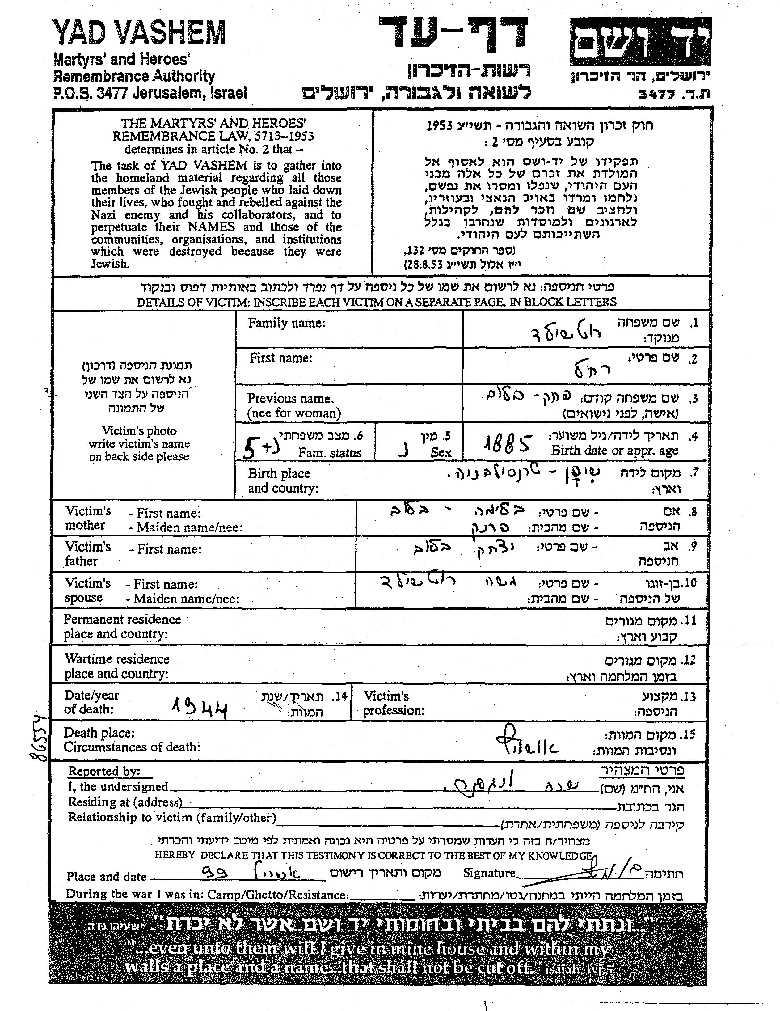 עיר/כפר, גטו/מחנה או אתר רצח או מחוז/אזור או מדינה. שם מקום ניתן לחפש רק בא-ב לטיני.