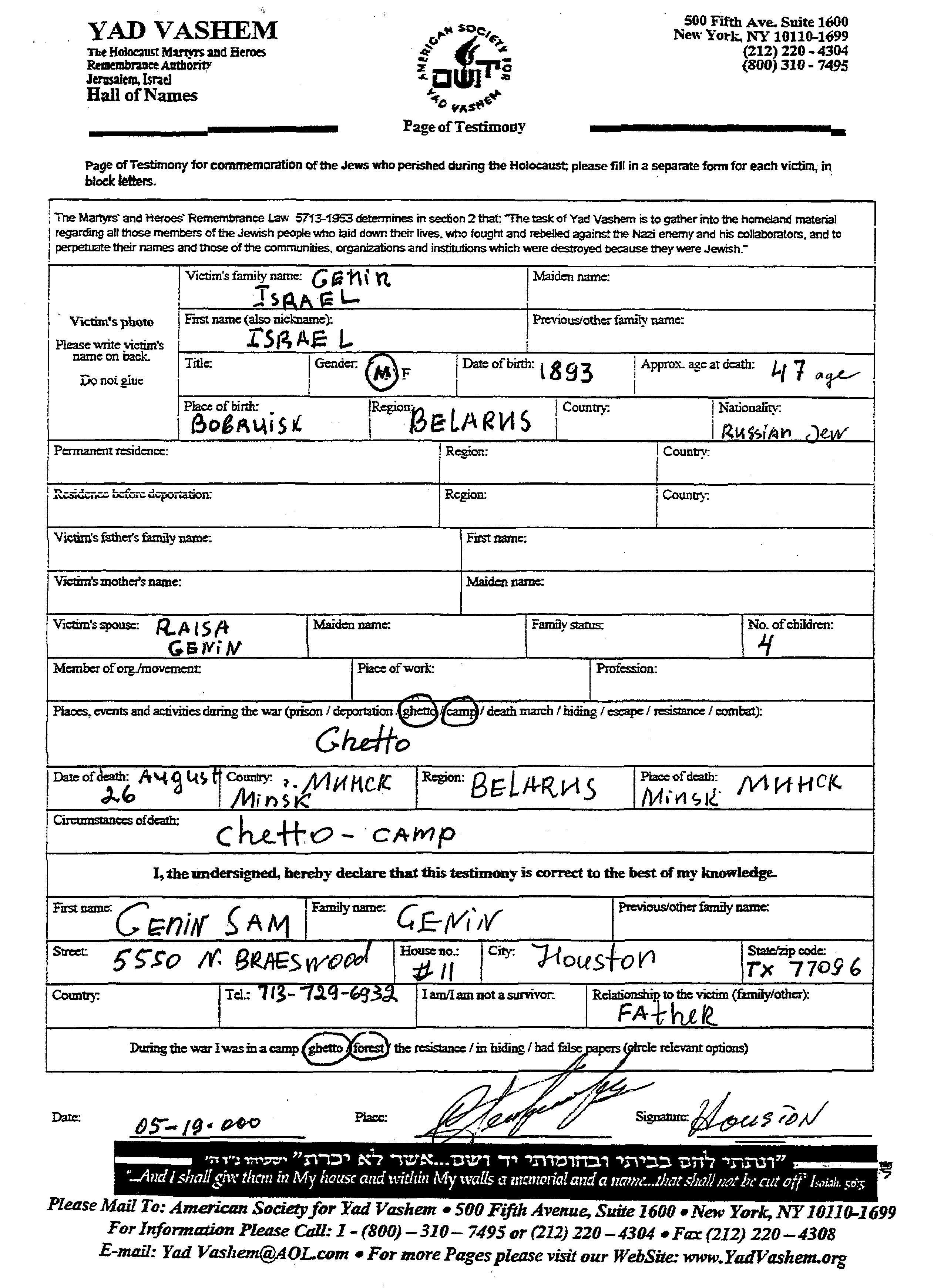 Search by name of any place during the Holocaust period: Town,Village, Camp, Ghetto, District, Region or Country