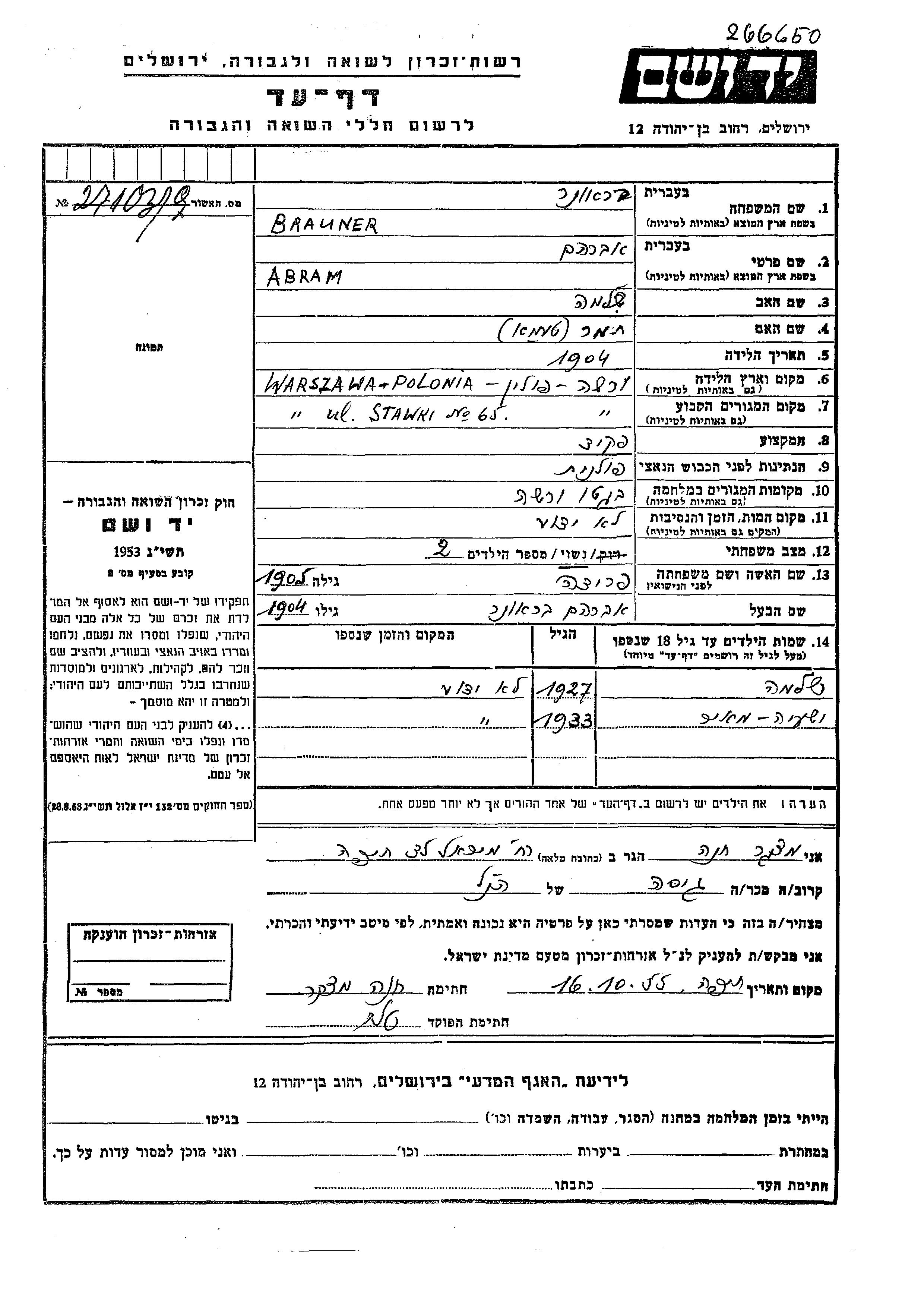 בראונר אברם 1904 Warszawa, פולין דף-עד