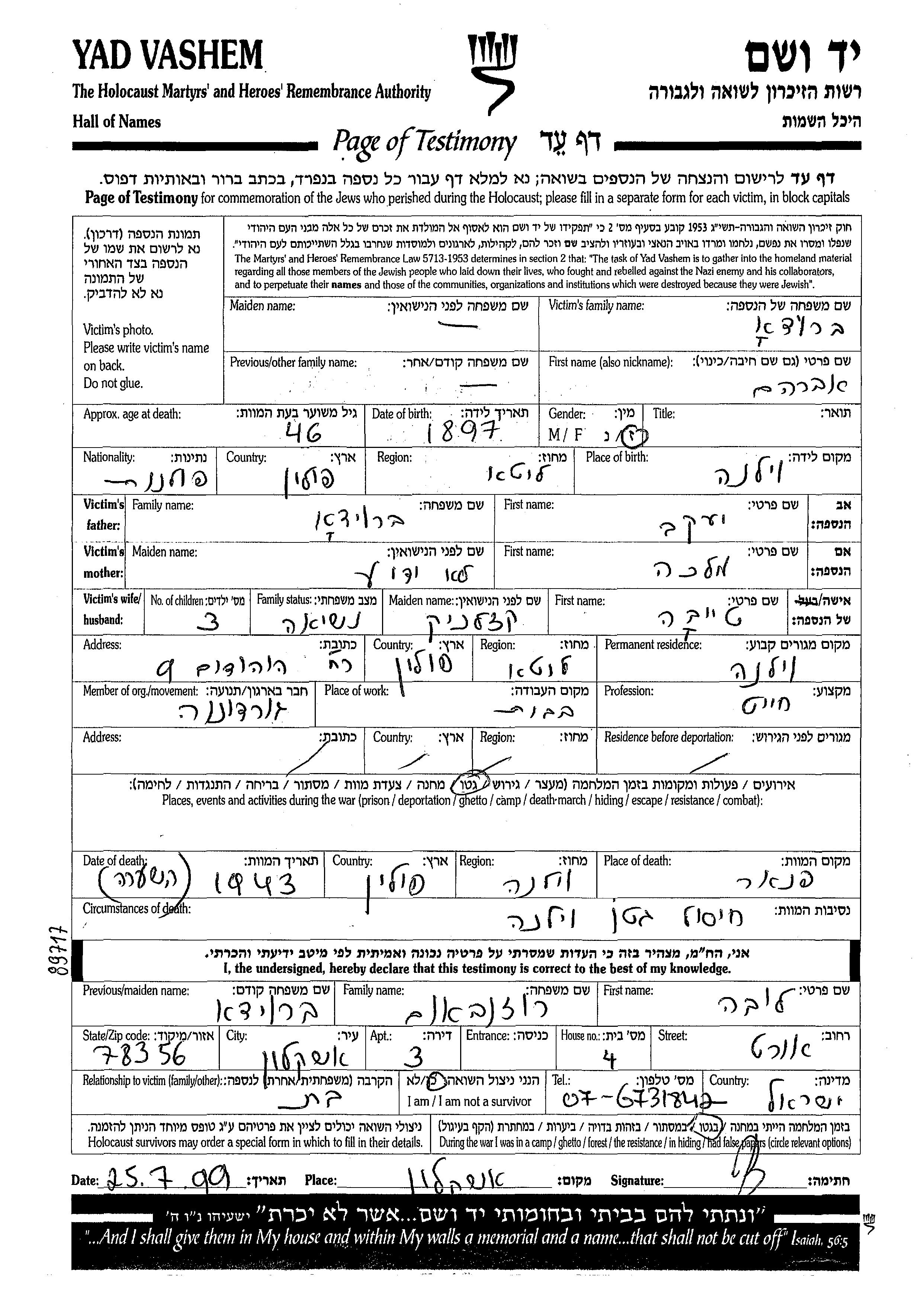 יד ושם - המפעל להנצחת השמות בדפי עד