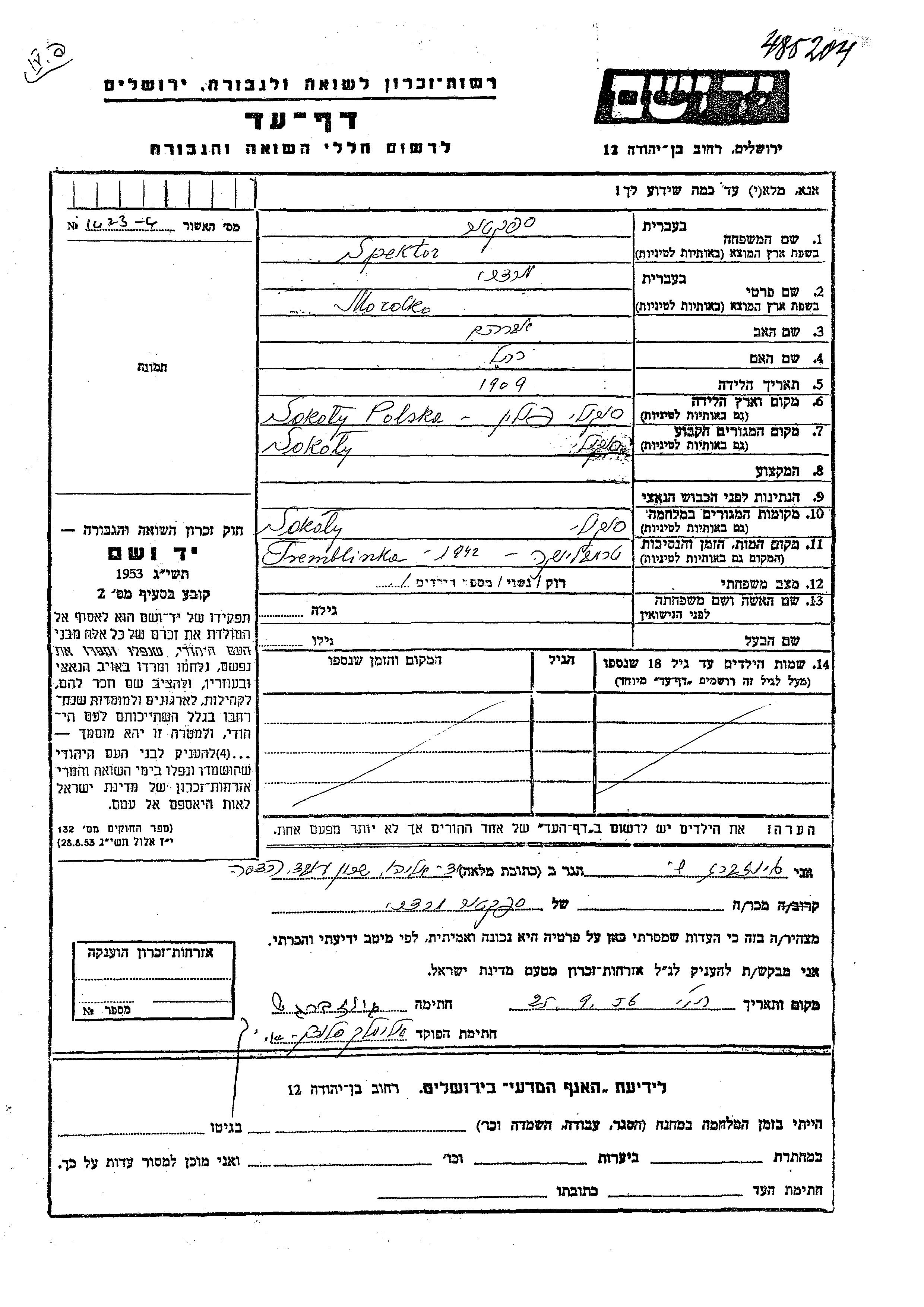 חיפוש שם מוסר דף העד. חיפוש לפי שם משפחה; כולל גם תוצאות חיפוש לפי שם הנעורים של אישה לפני הנישואין