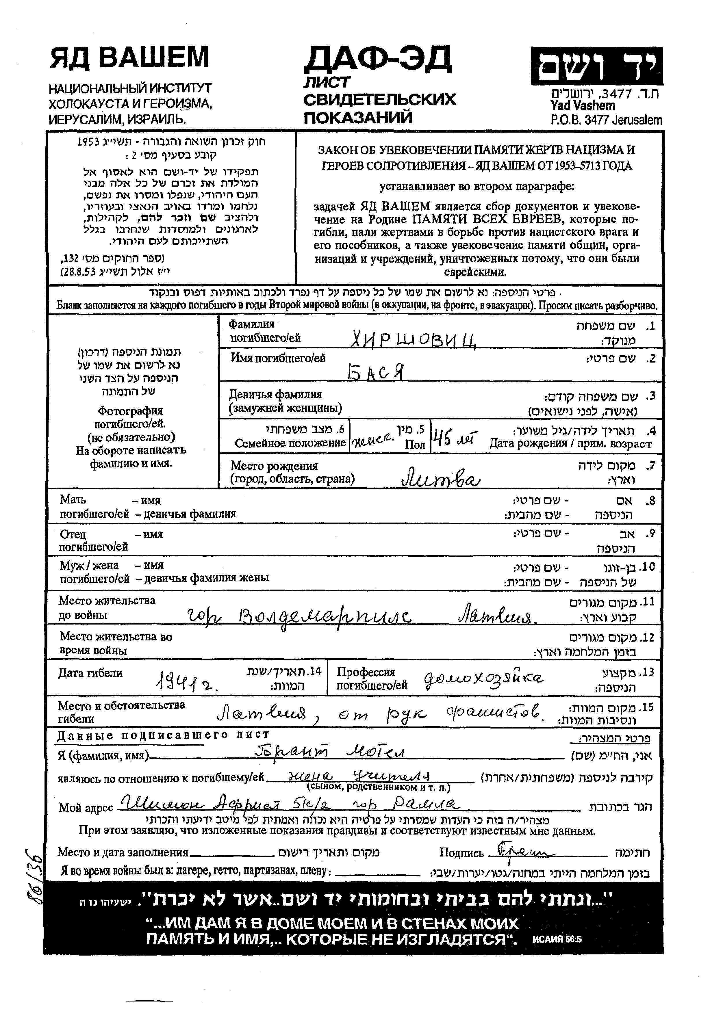 יד ושם - המפעל להנצחת השמות בדפי עד
