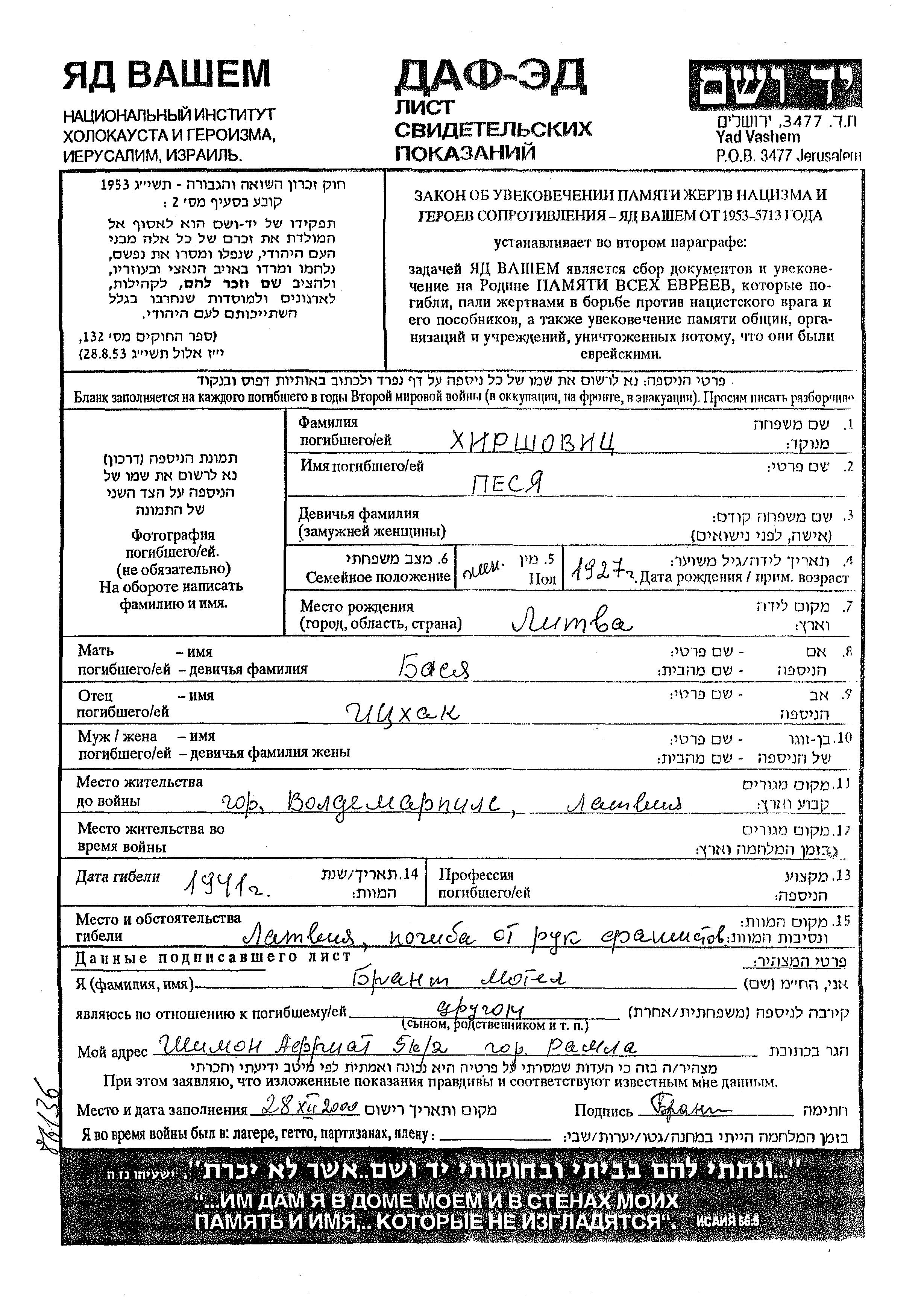 חיפוש שם מוסר דף העד. חיפוש לפי כל שם פרטי, כולל כינוי או שם חיבה
