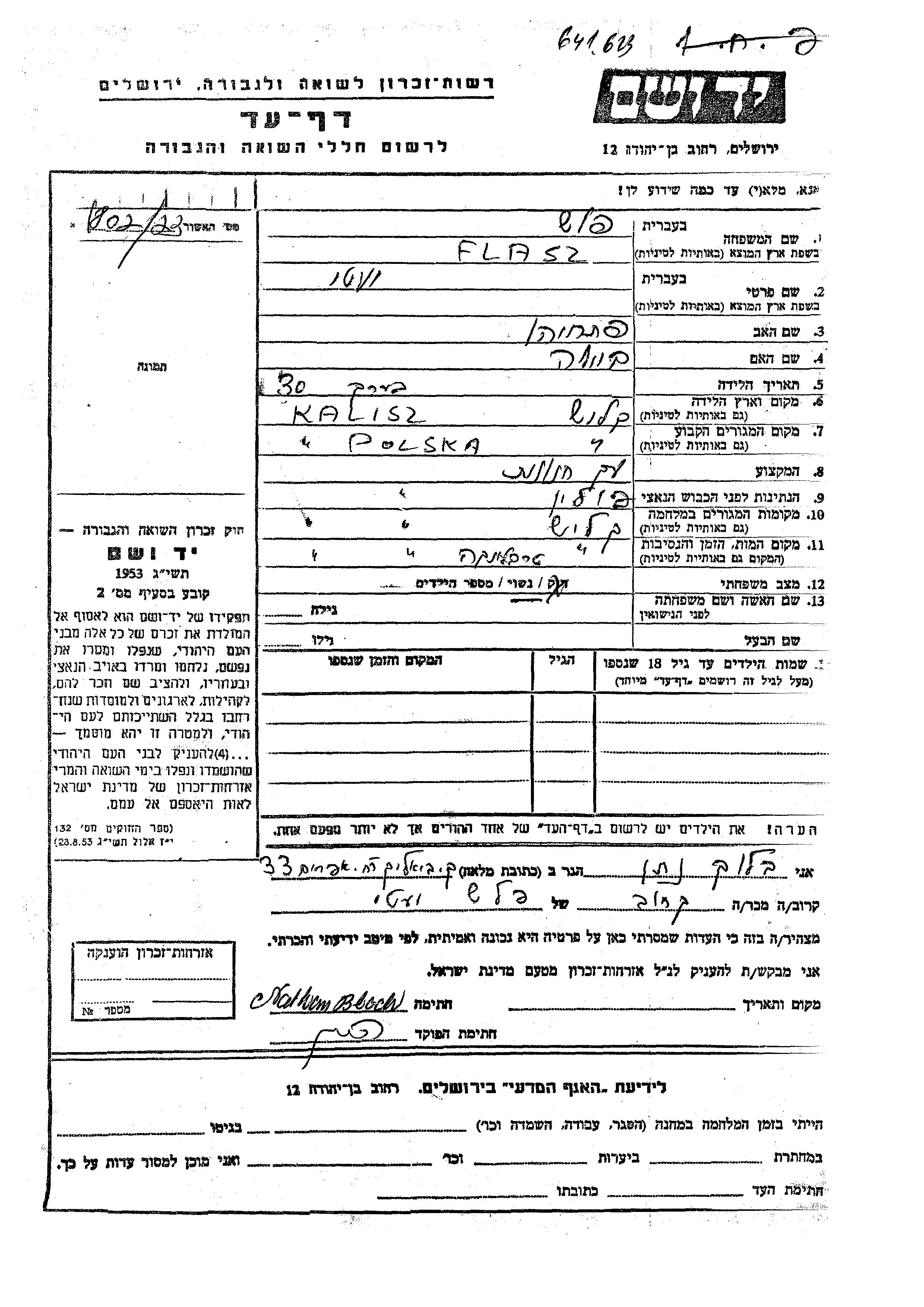 יד ושם - המפעל להנצחת השמות בדפי עד
