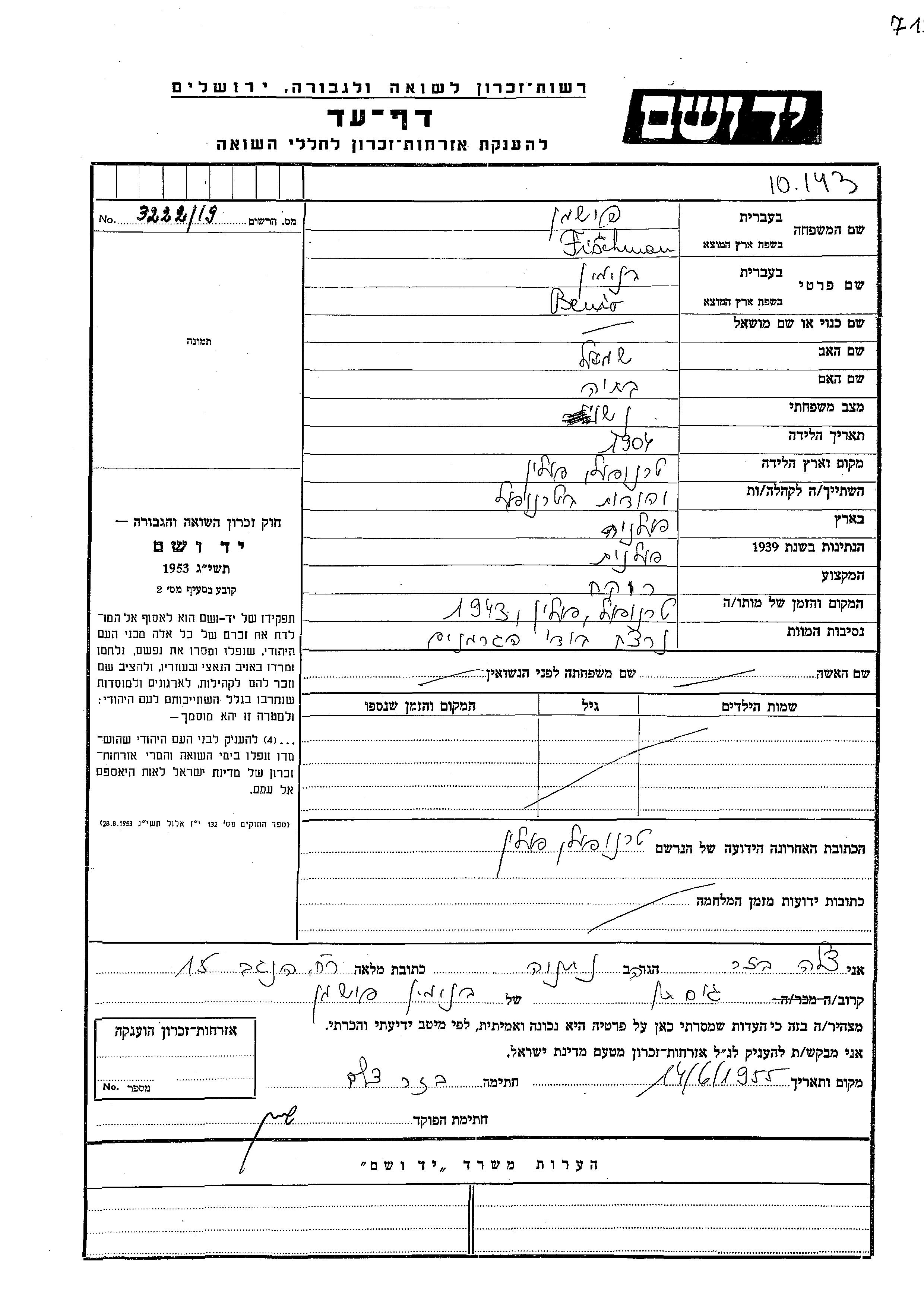 חיפוש שם מוסר דף העד. חיפוש לפי כל שם פרטי, כולל כינוי או שם חיבה