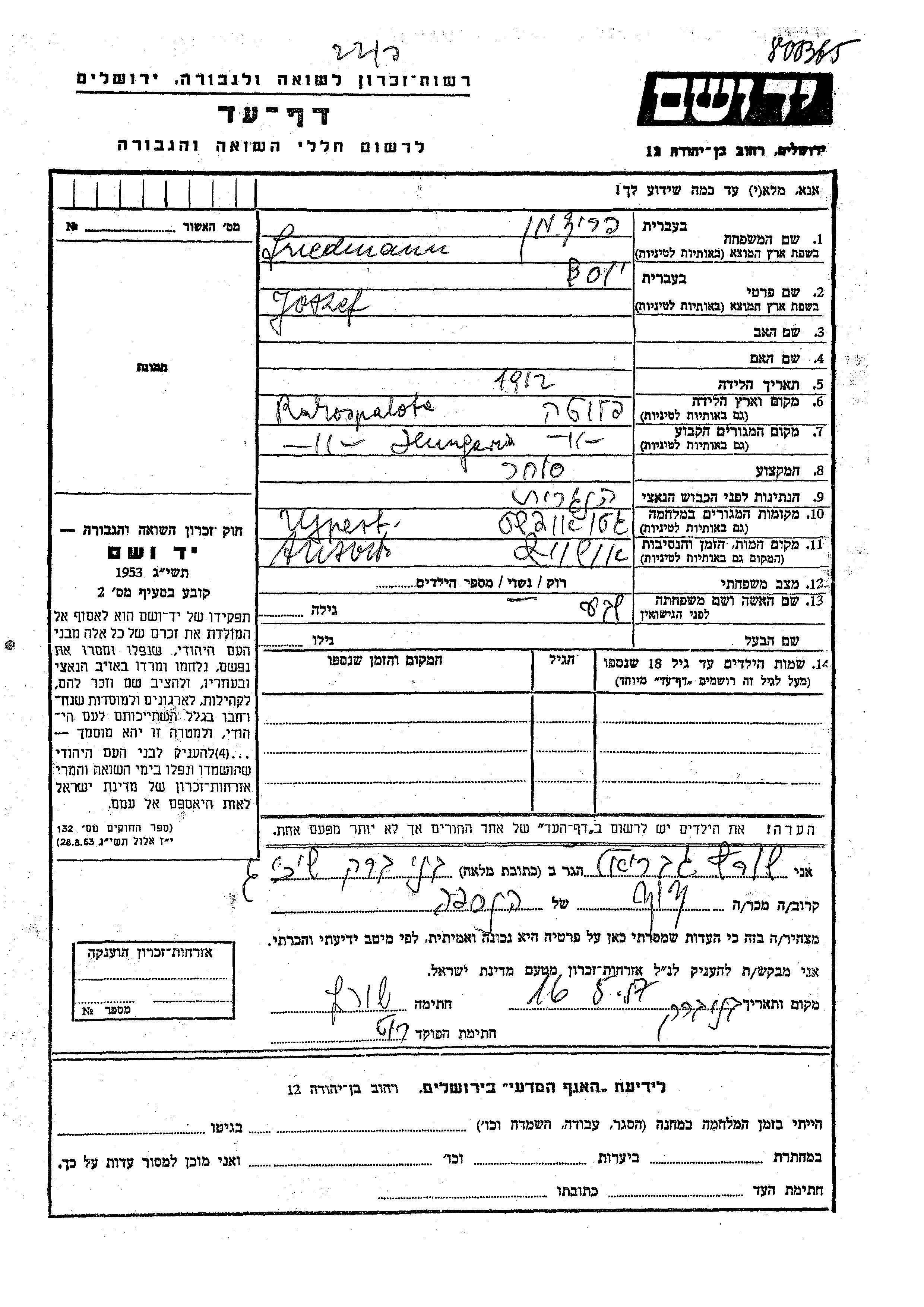 יד ושם - המפעל להנצחת השמות בדפי עד