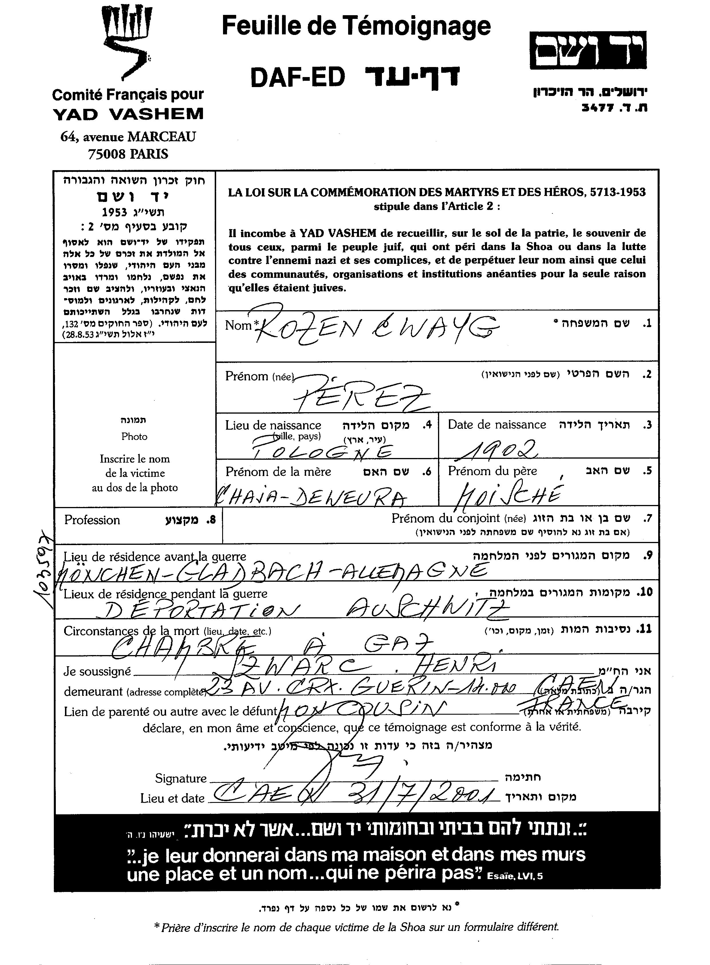חיפוש שם מוסר דף העד. חיפוש לפי כל שם פרטי, כולל כינוי או שם חיבה