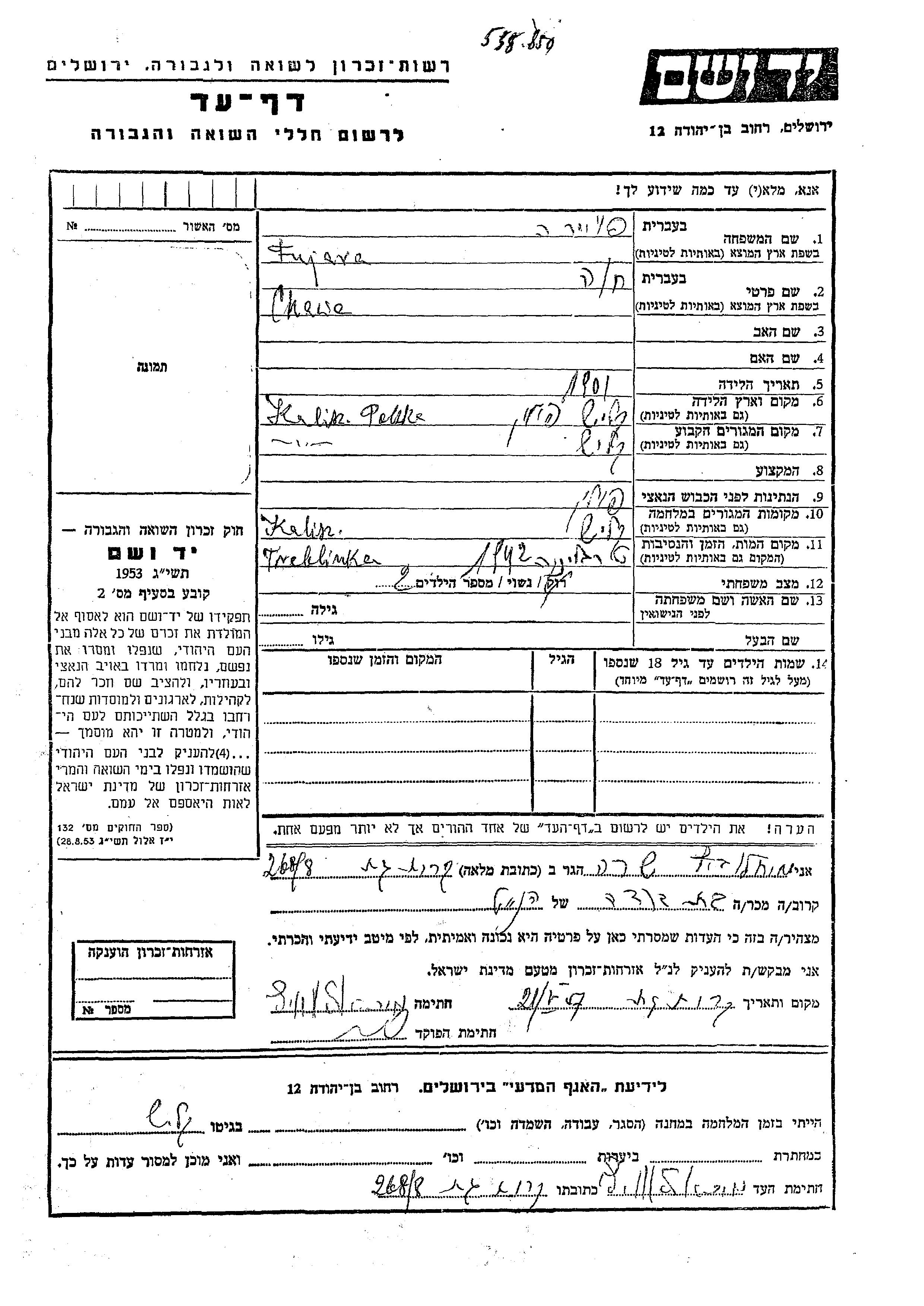 יד ושם - המפעל להנצחת השמות בדפי עד