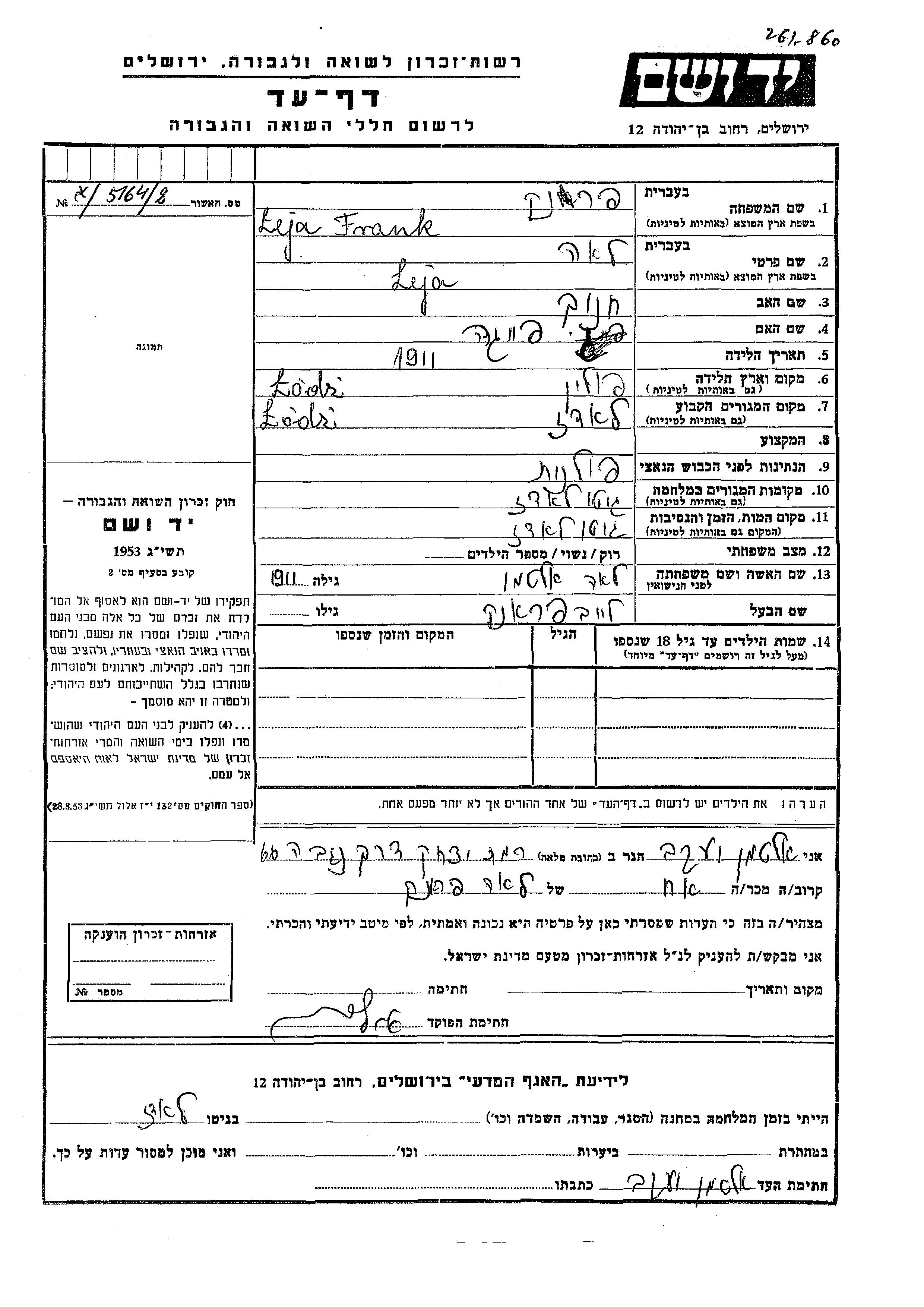 יד ושם - המפעל להנצחת השמות בדפי עד