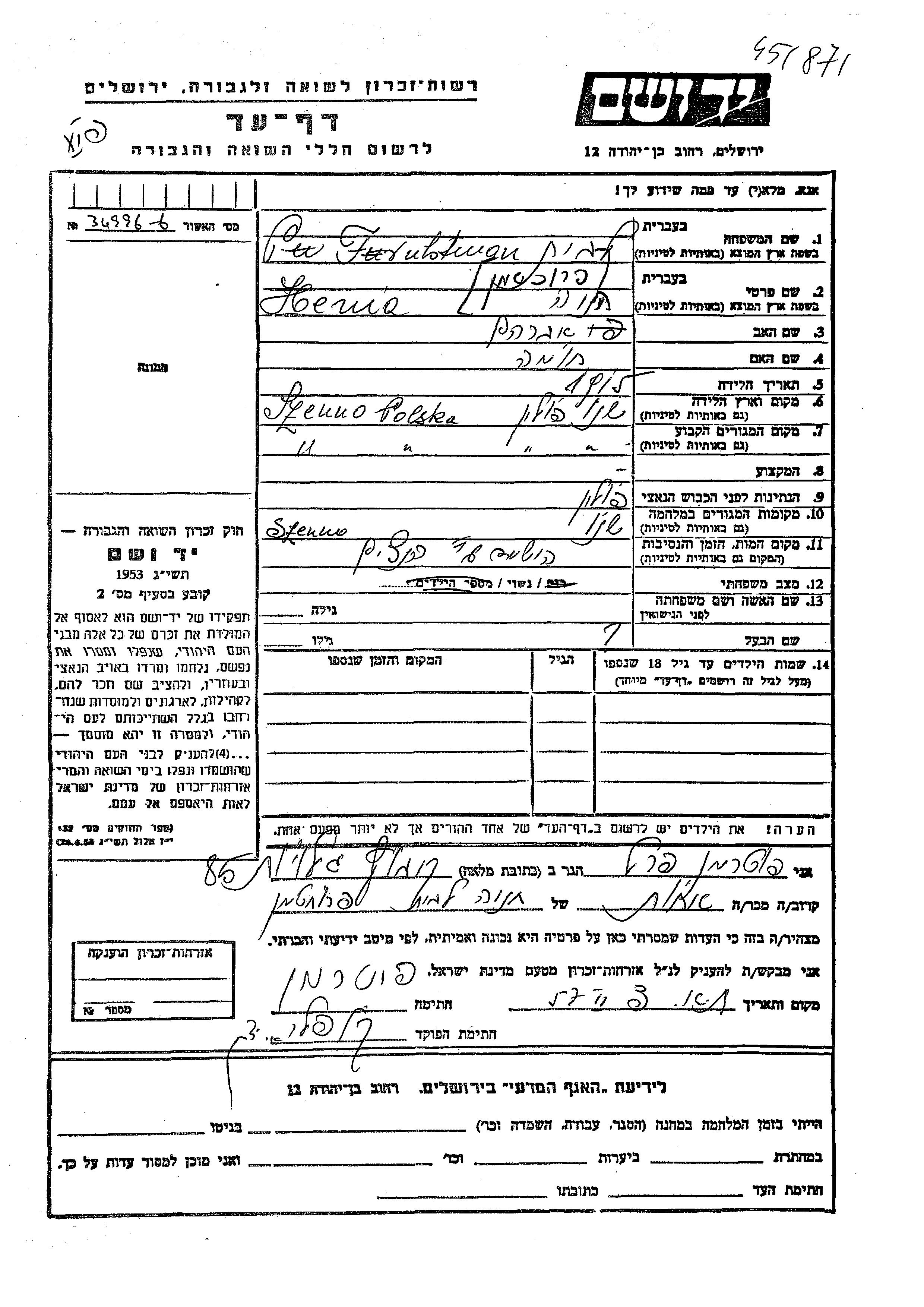 יד ושם - המפעל להנצחת השמות בדפי עד