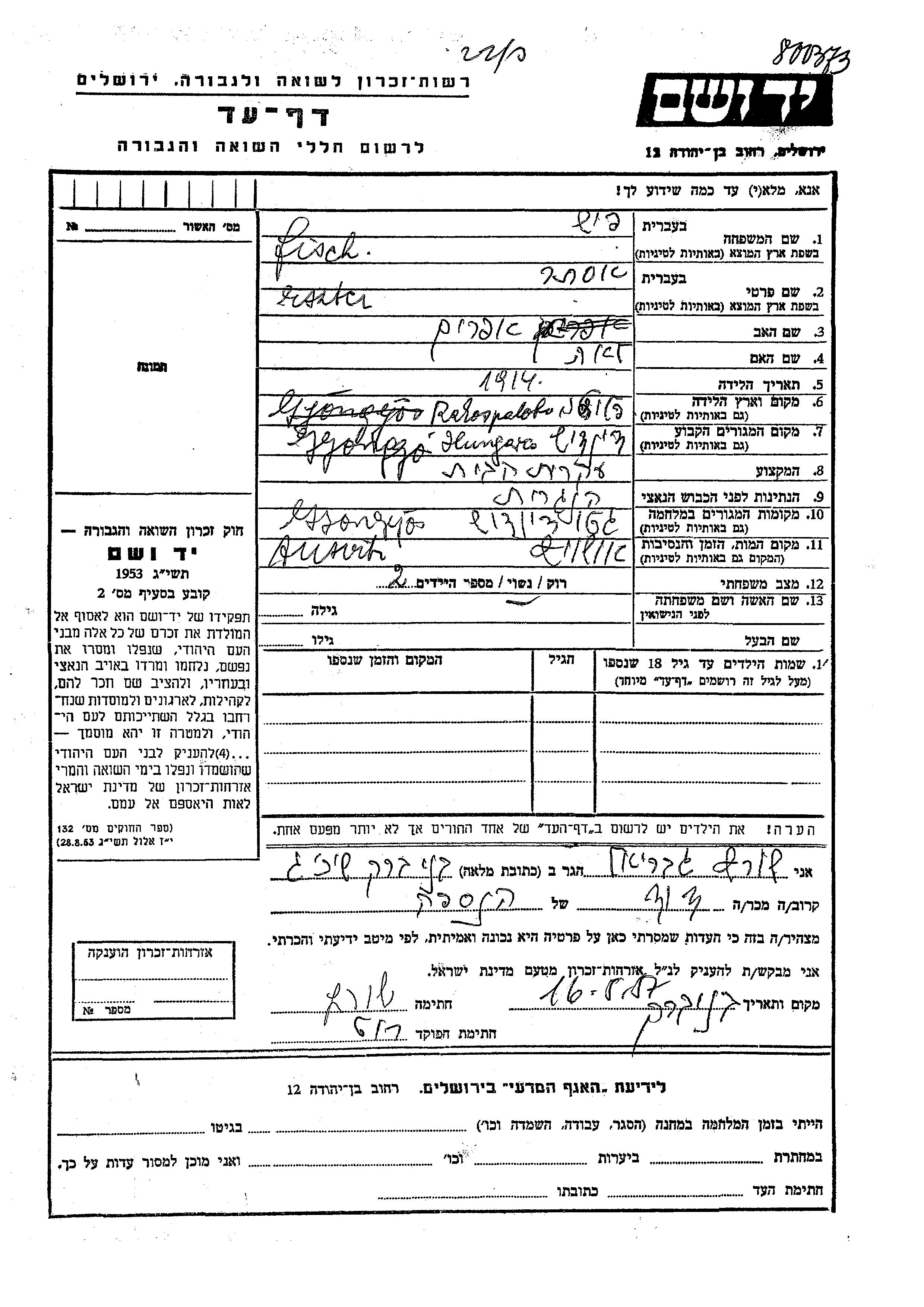Fisch Eszter 1914 Gyongyos, הונגריה דף-עד