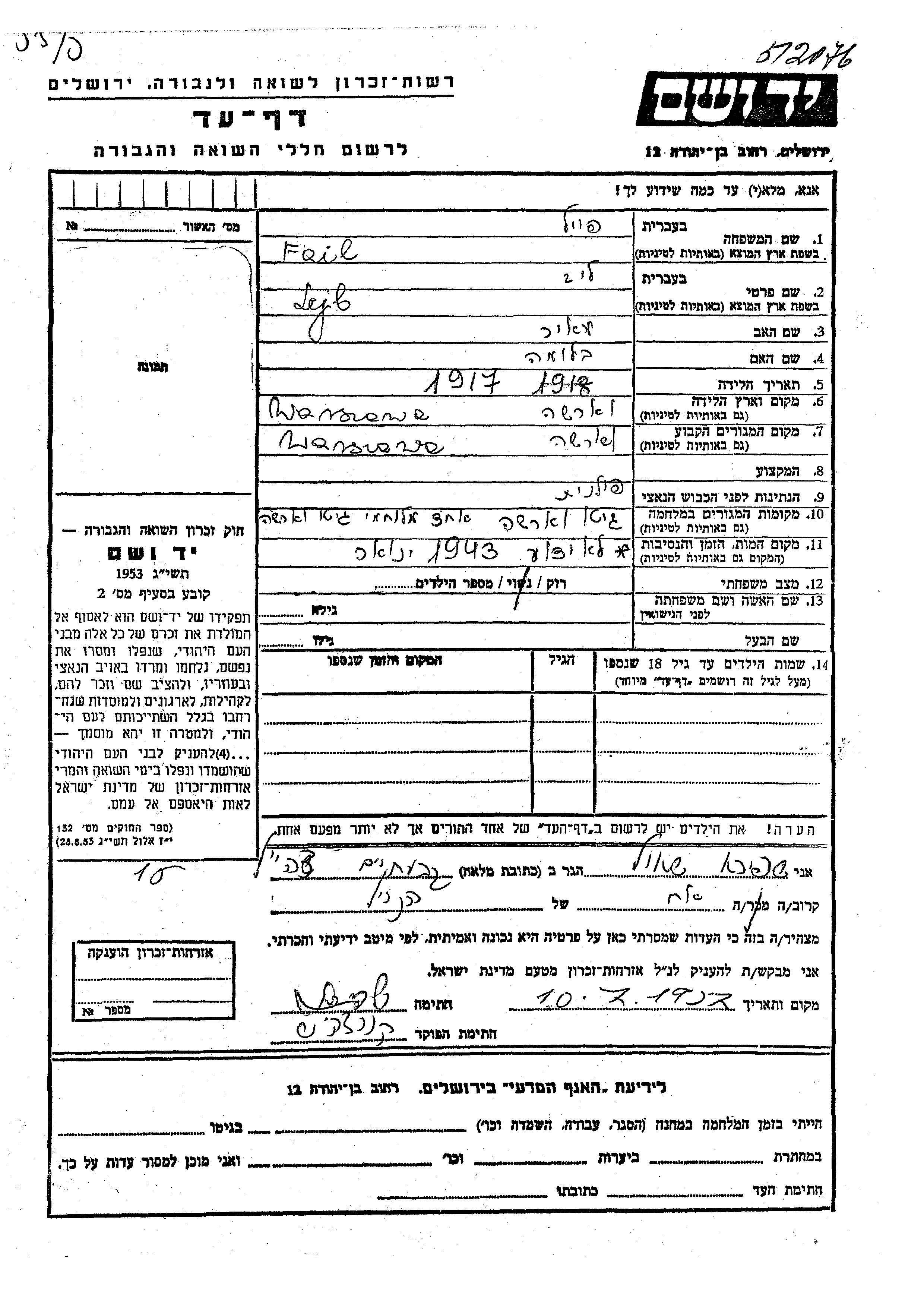 חיפוש שם מוסר דף העד. חיפוש לפי כל שם פרטי, כולל כינוי או שם חיבה