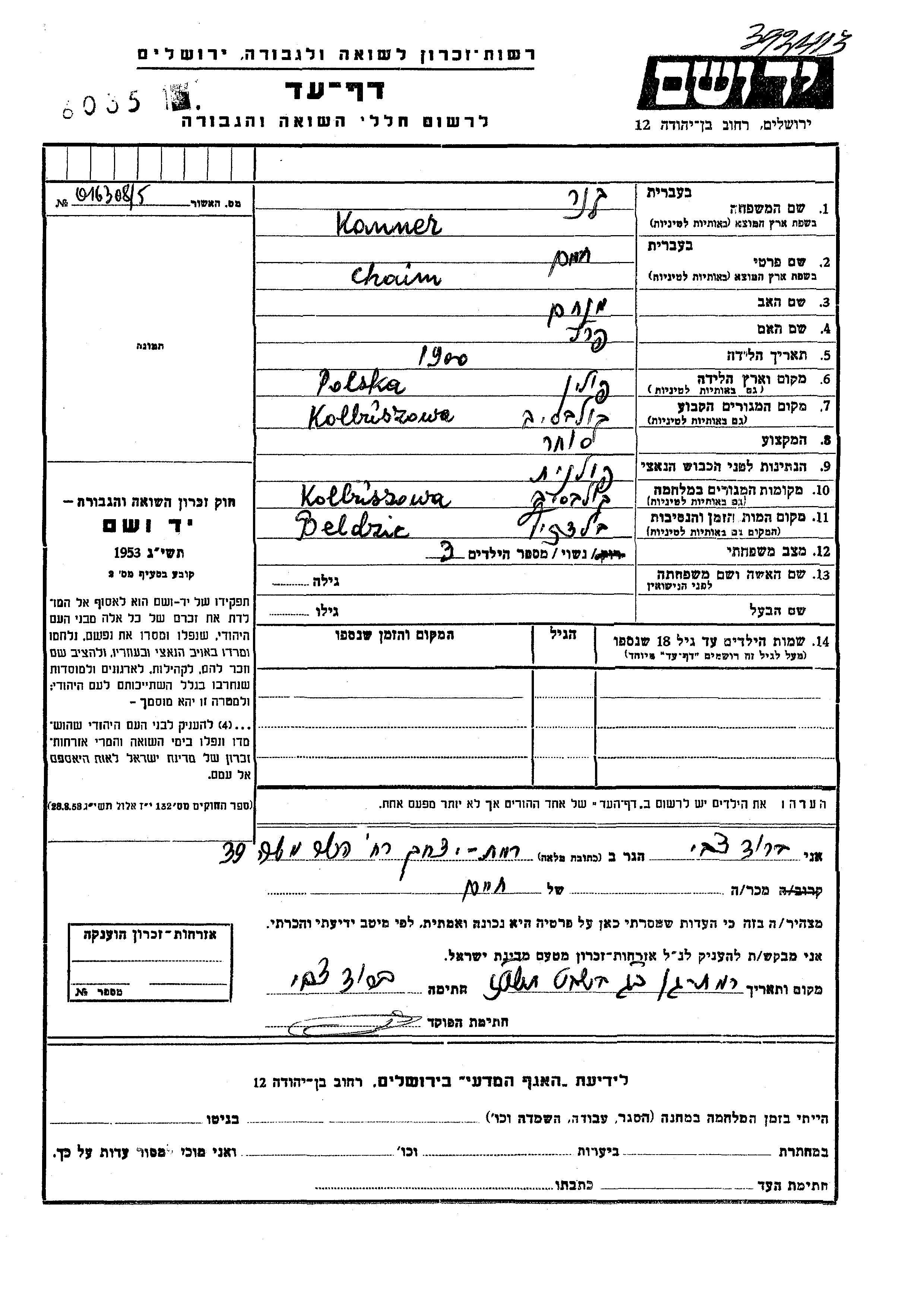 Kanner חיים 1900 Kolbuszowa, פולין דף-עד
