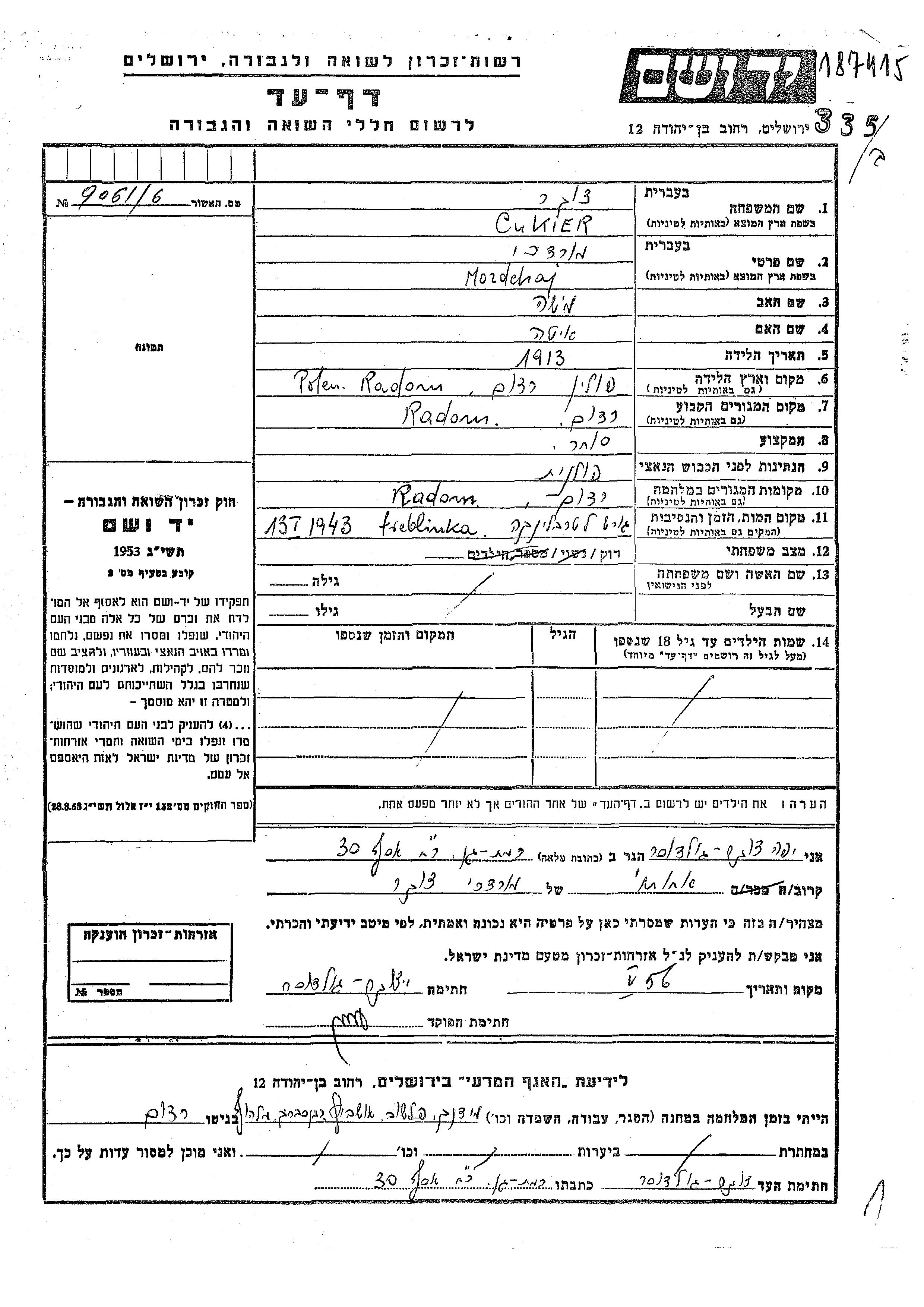 Cukier Mordchaj 1913 Radom, פולין דף-עד