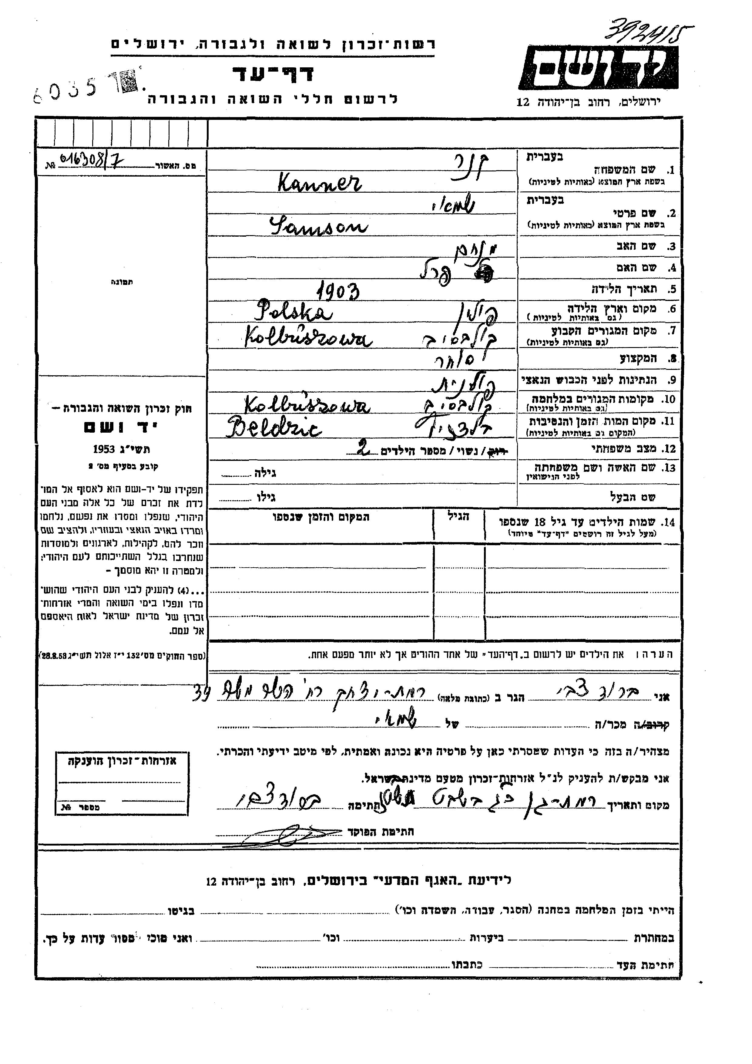 Kanner סמסון שמאי 1903 Kolbuszowa, פולין דף-עד