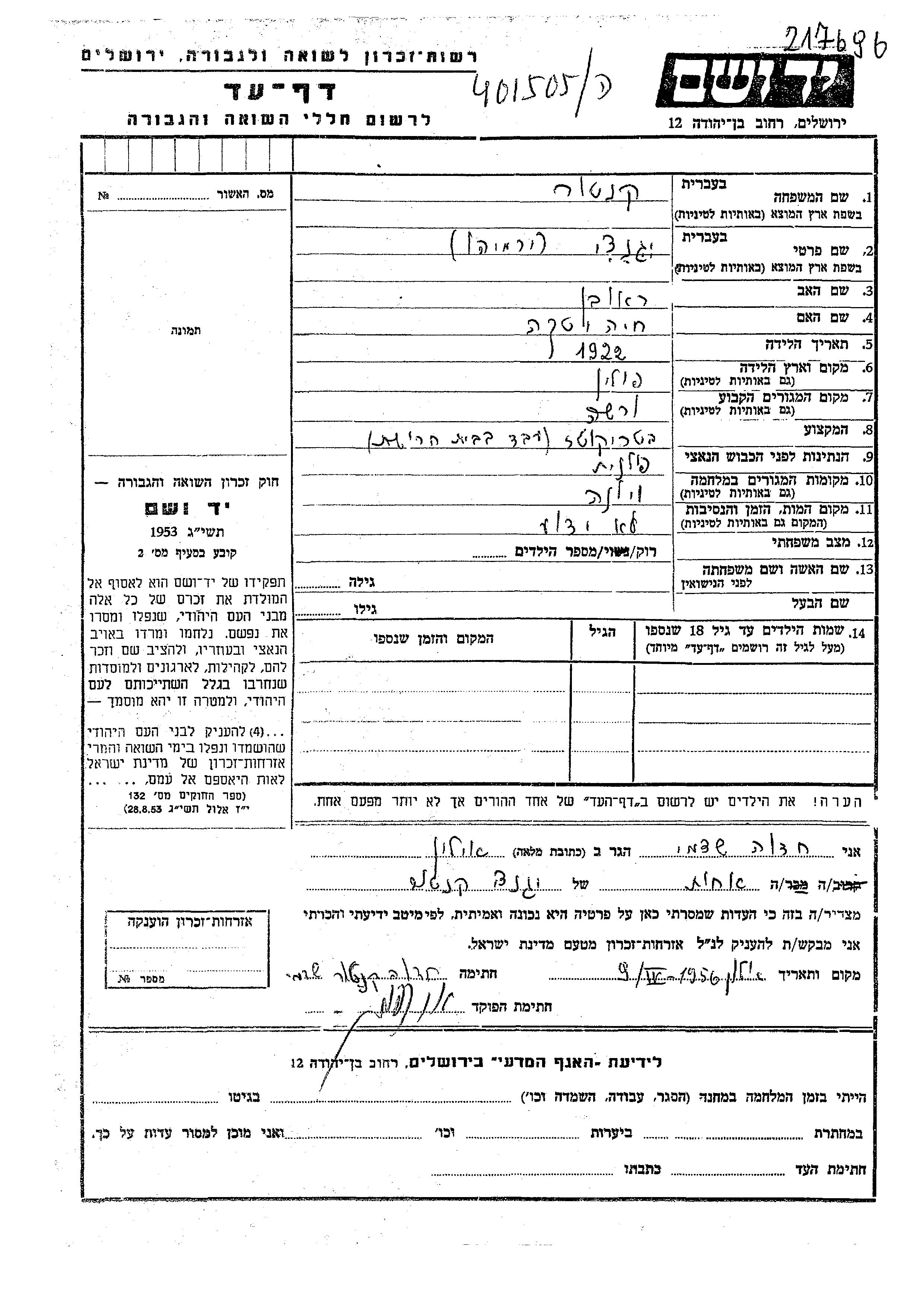 יד ושם - המפעל להנצחת השמות בדפי עד