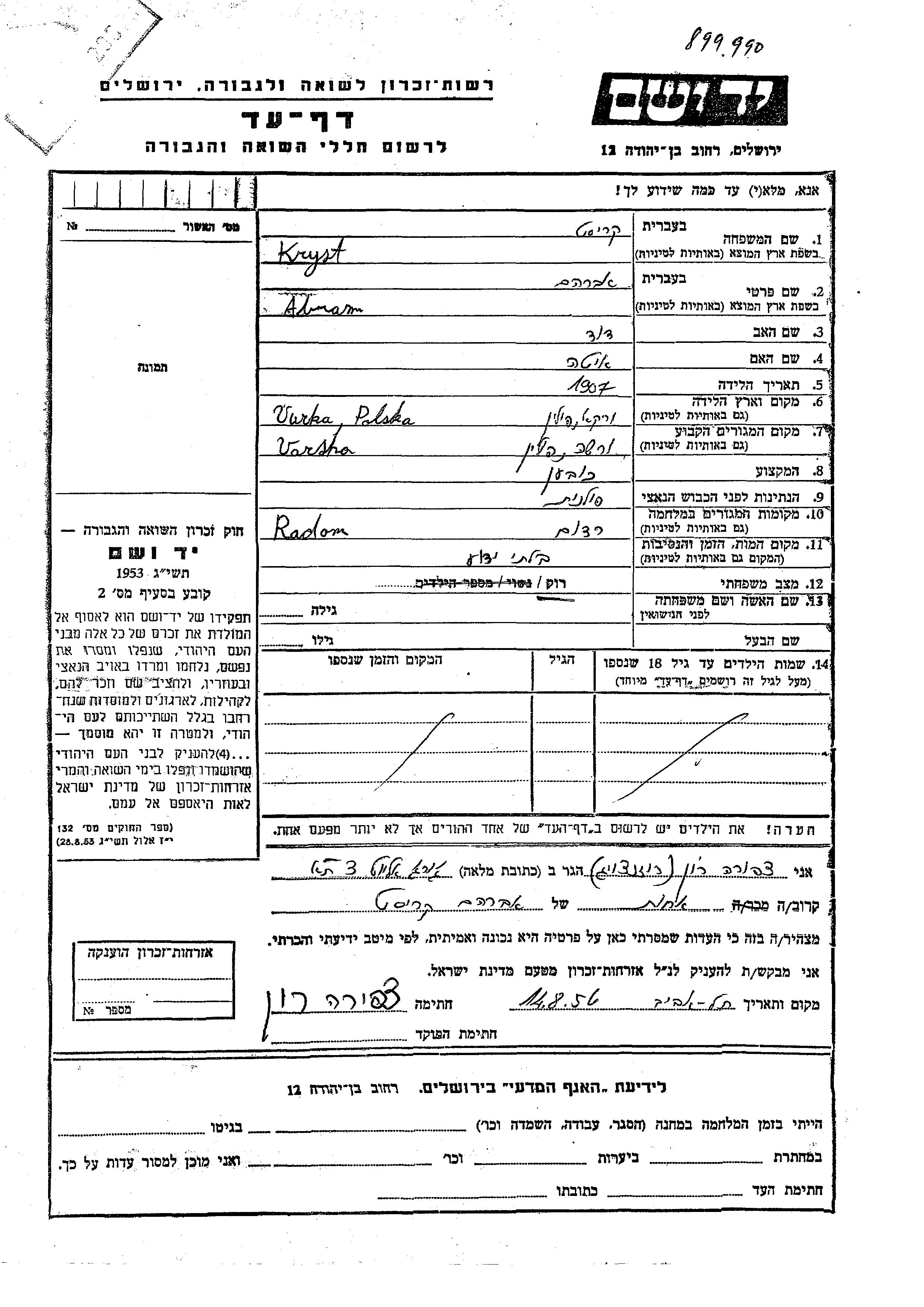 יד ושם - המפעל להנצחת השמות בדפי עד