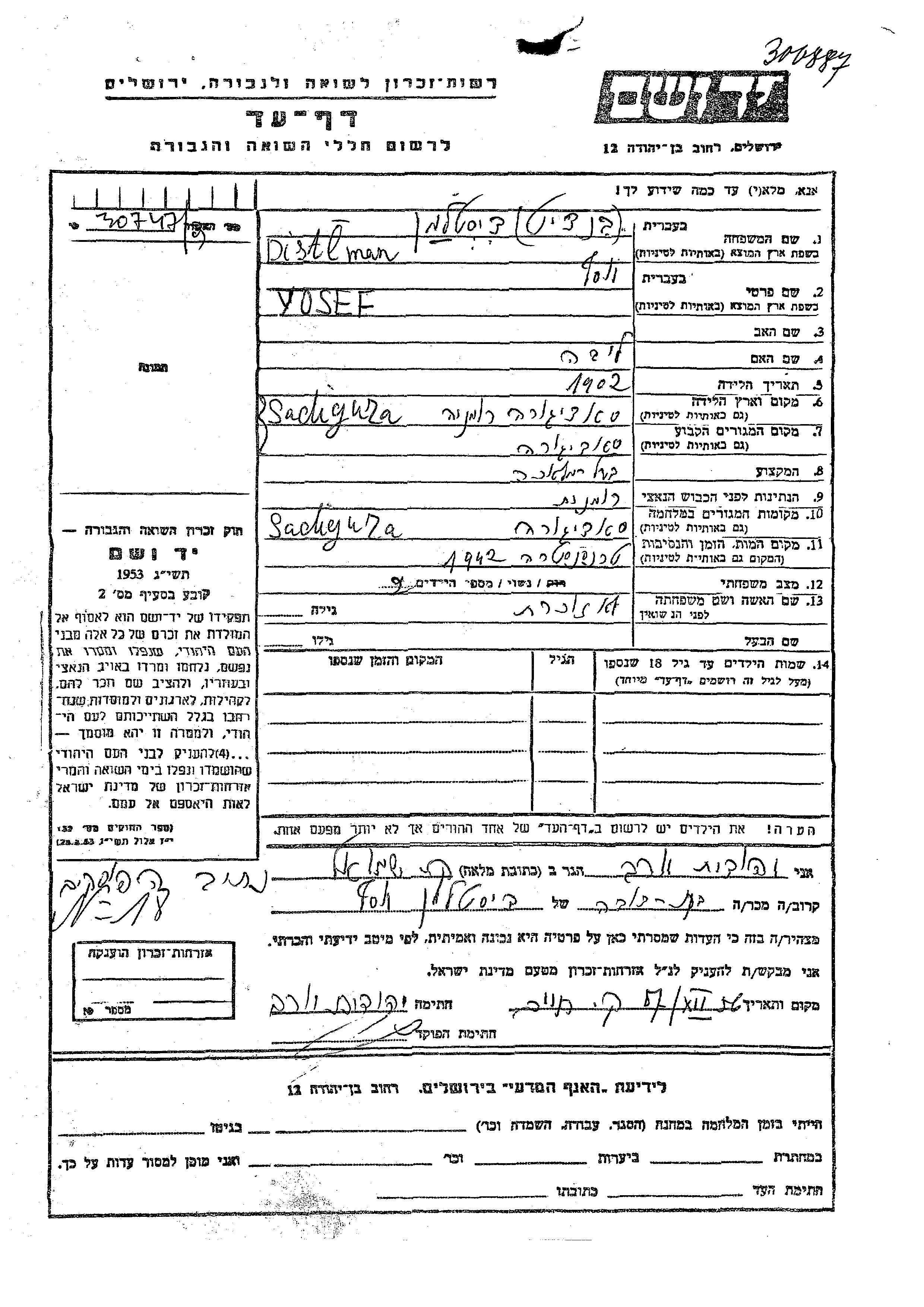 יוסף Distlman בנדיט נולד בSadagura שברומניה בשנת 1902 לליבה. הוא היה נשוי. לפני מלחמת העולם השניה התגורר בSadagura שברומניה. בזמן המלחמה הוא היה בSadagura שברומניה. יוסף נרצח בשואה. מקום המוות: Transnistria שבאוקראינה (ברה"מ) בשנת 1942.