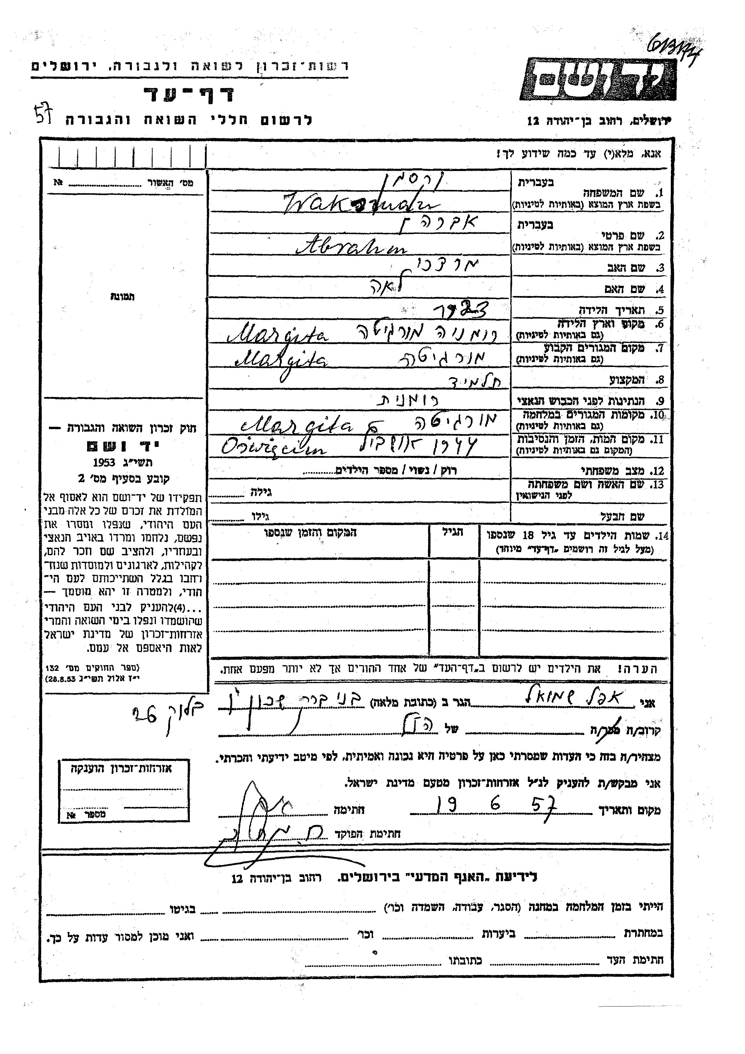 Abrahm Waksman נולד בMargita שברומניה בשנת 1923 למרדכי ולאה. הוא היה תלמיד. לפני מלחמת העולם השניה התגורר בMargita שברומניה. בזמן המלחמה הוא היה בMargita שברומניה. הוא נרצח בשואה. מקום המוות: Auschwitz שבפולין בשנת 1944.