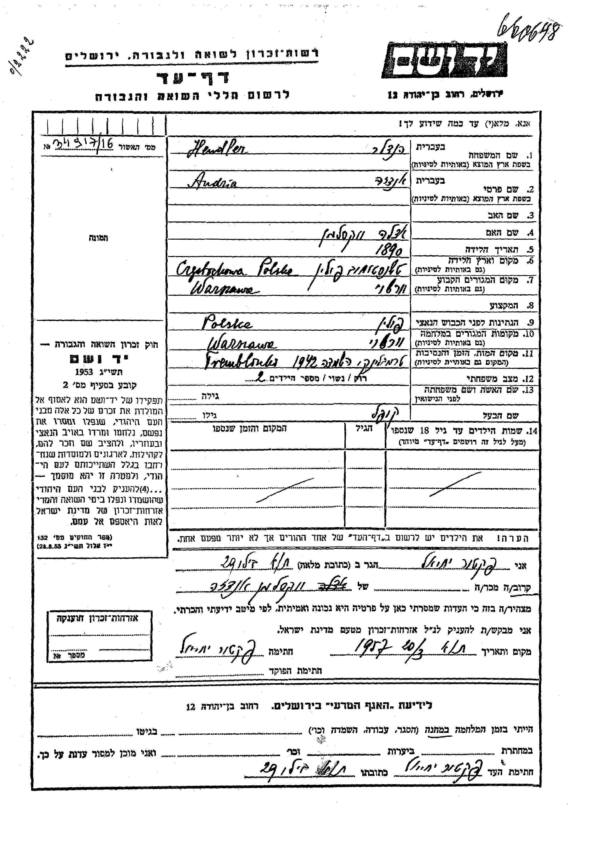 הנדלר אנדזיה 1890 Varsha, פולין דף-עד
