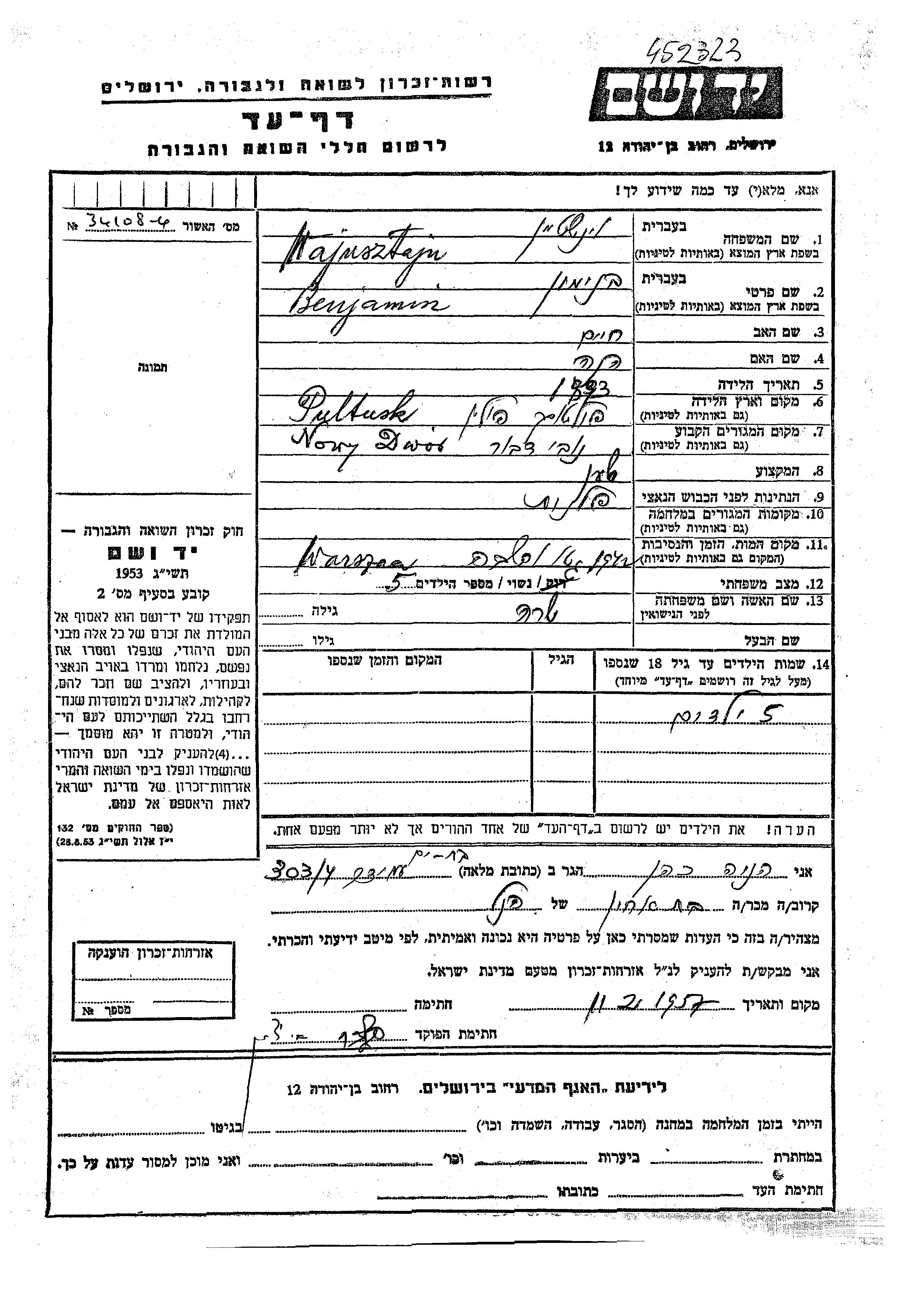 Wajnsztajn Benjamin 1893 Nowy Dwor, פולין דף-עד