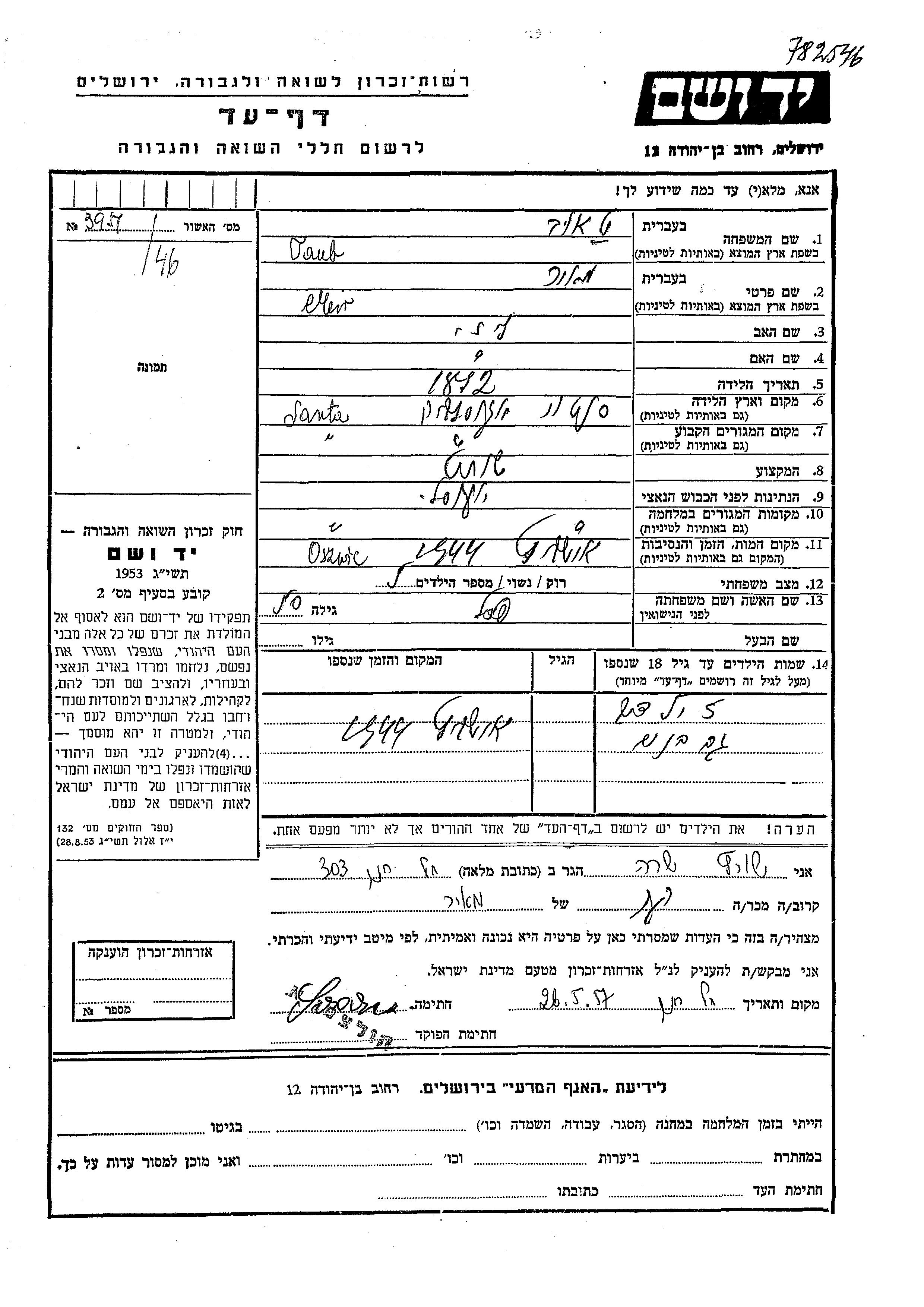יד ושם - המפעל להנצחת השמות בדפי עד