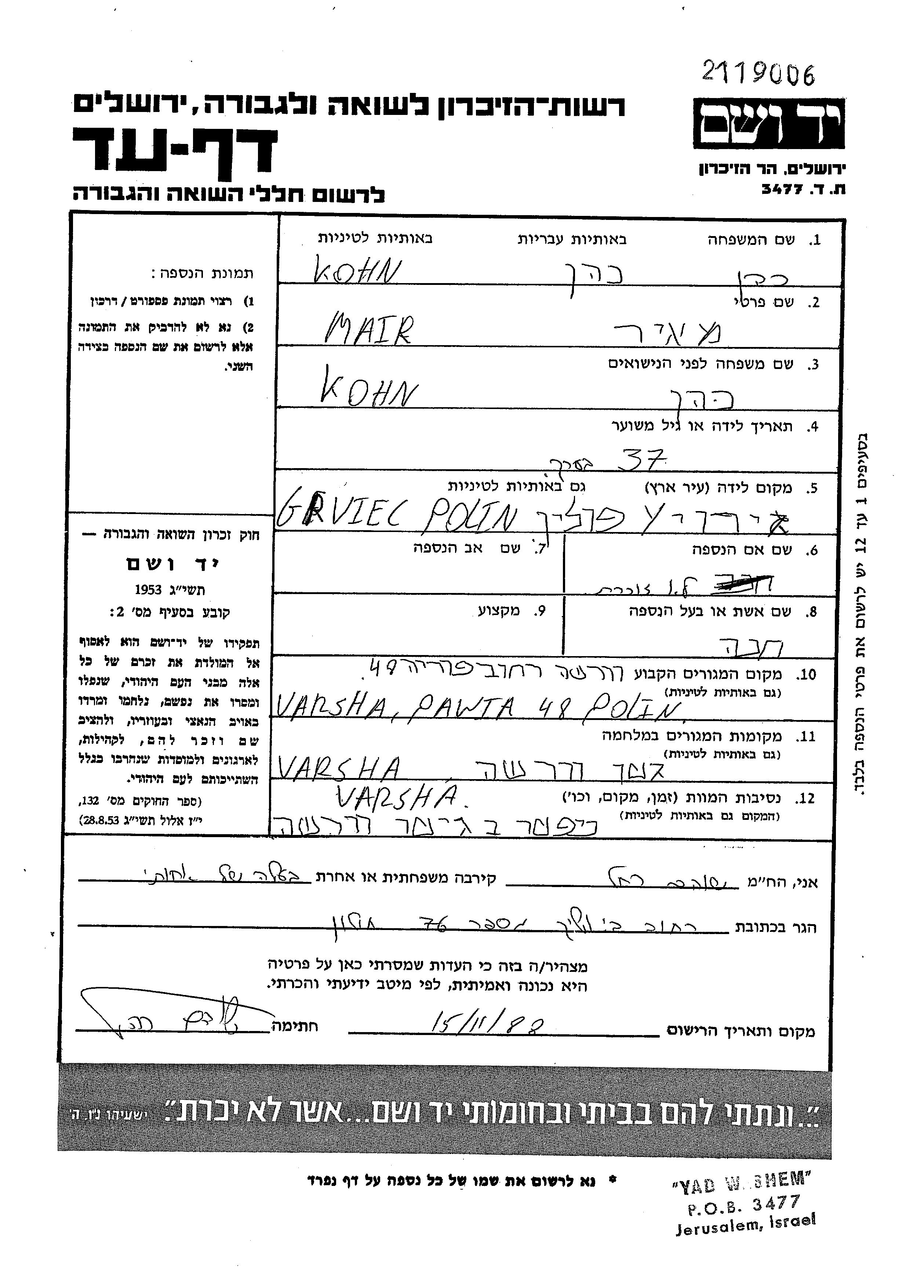 עיר/כפר, גטו/מחנה או אתר רצח או מחוז/אזור או מדינה. שם מקום ניתן לחפש רק בא-ב לטיני.